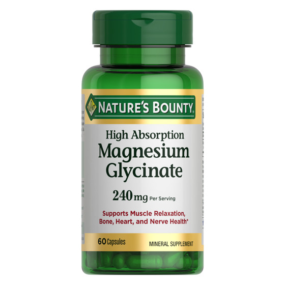 Nature's Bounty High Absorption Magnesium Glycinate Supplements, 240mg, Supports