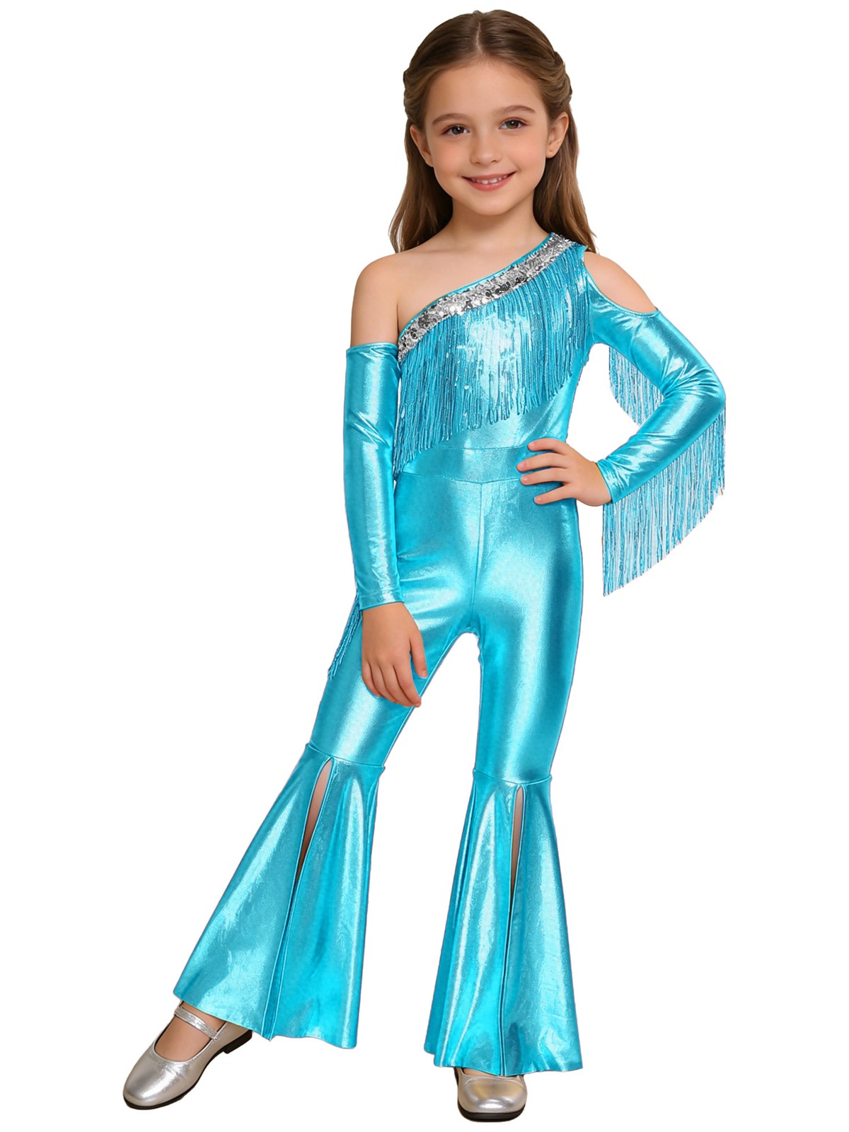Kids Girls Leotard Unitard Rompers Dance Jumpsuit Themed Parties Metallic Slit