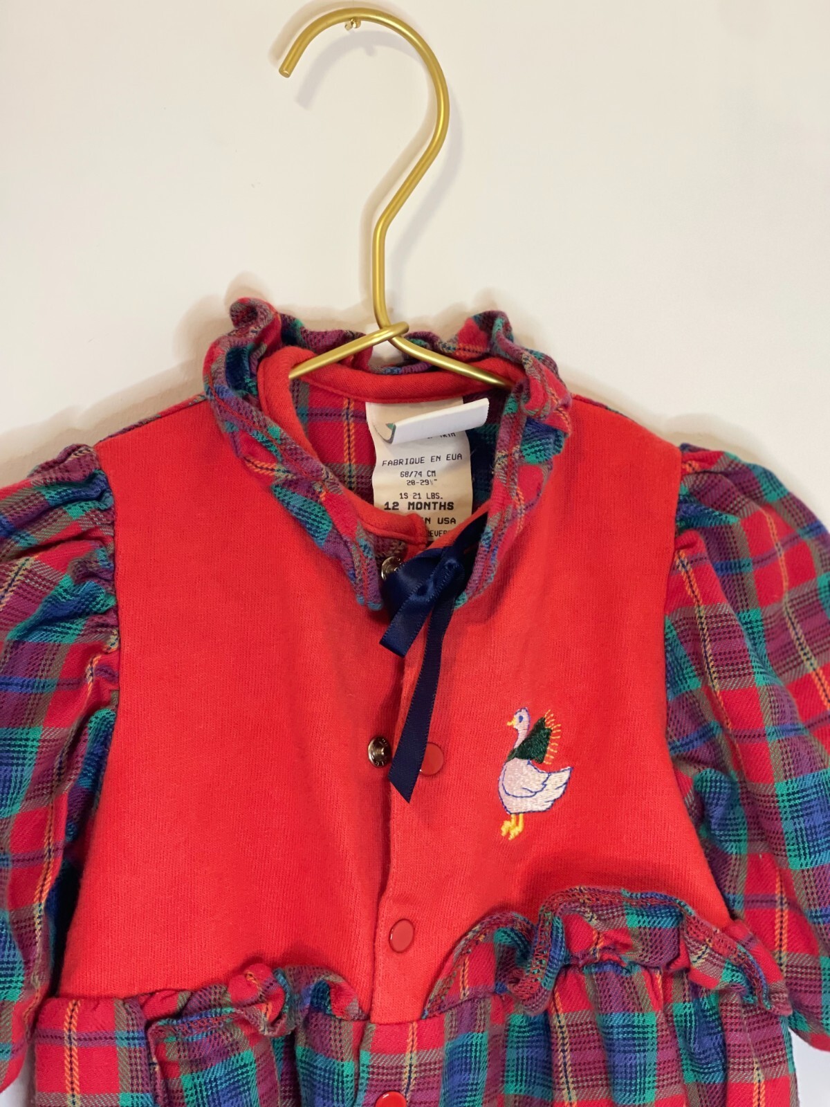 Little Me Vintage Plaid Baby Bodysuit One Piece Christmas Red