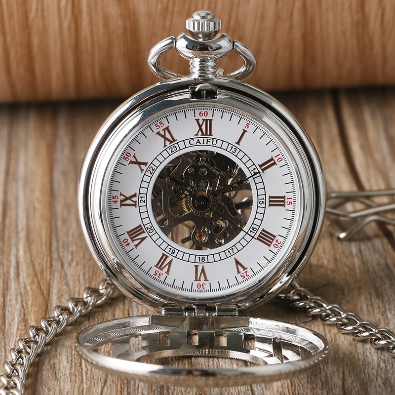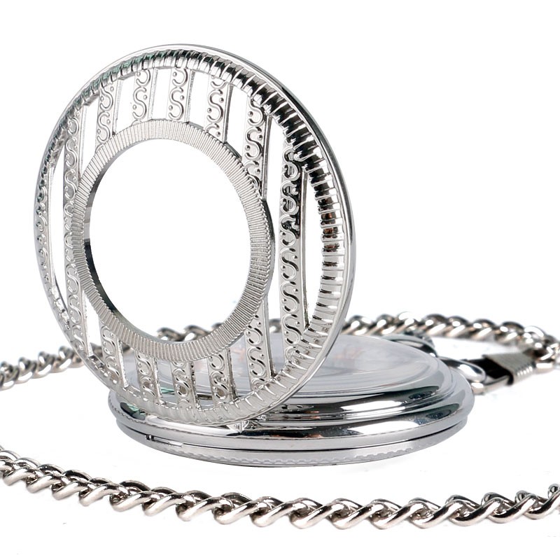 как выглядит Silver Hollow Stripe Case Mens Pendant Hand Winding Mechanical Pocket Watch Gift фото
