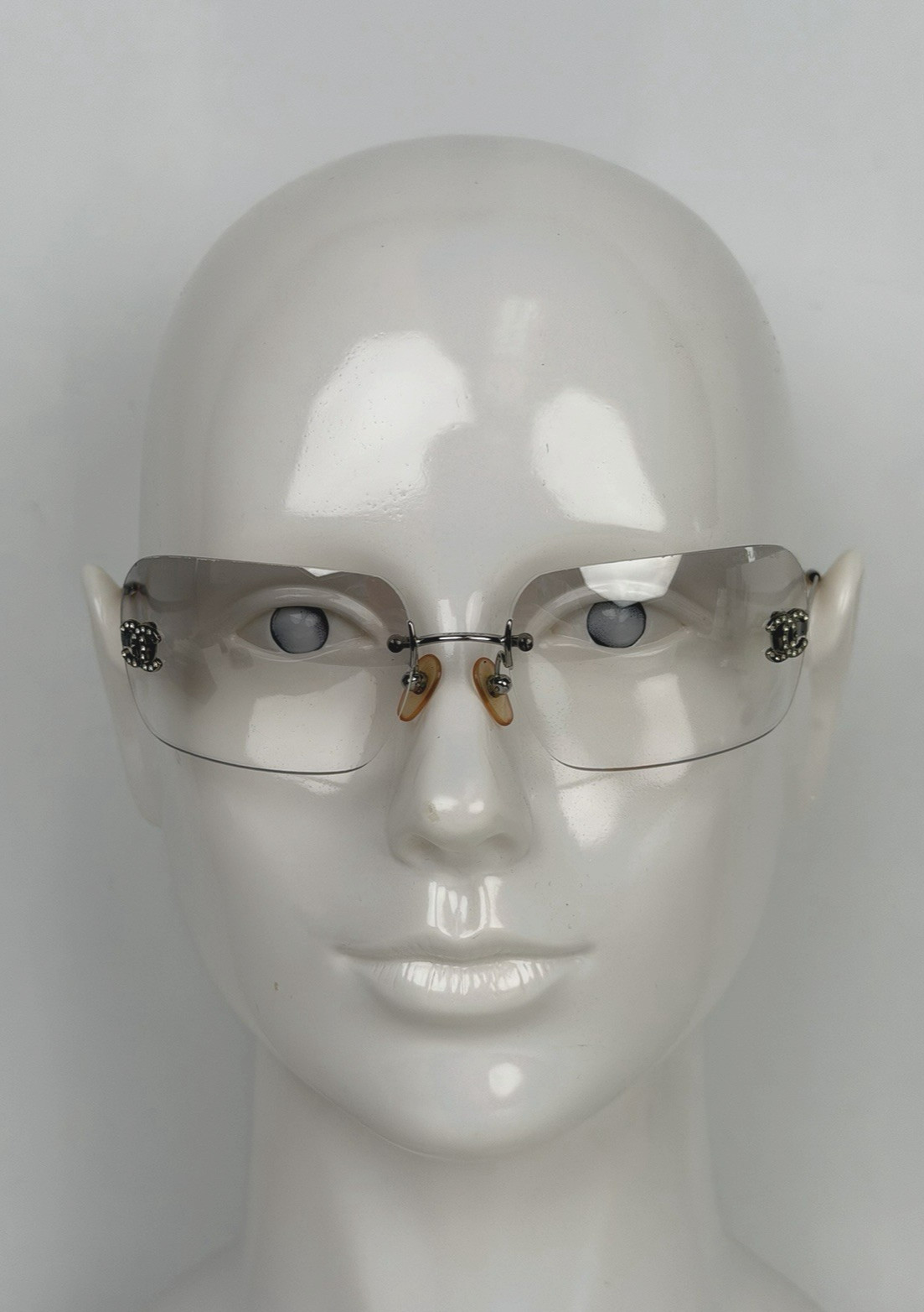 как выглядит Chanel Vintage Model 4017-D Rimless Sunglasses Gradient Lenses Rhinestone Logo фото