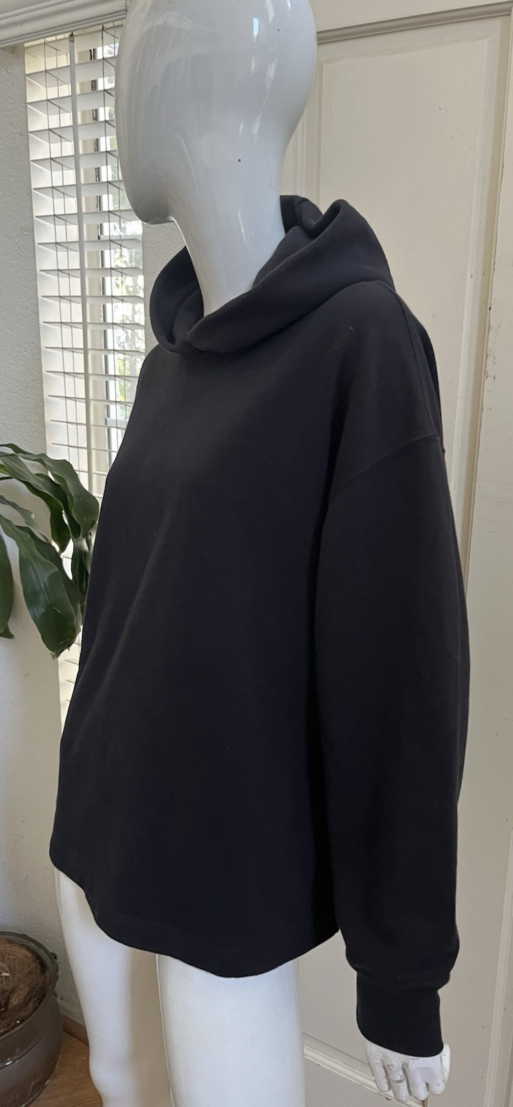 UNIQLO Women's NEW Black Cotton Terry Knit Hooded Pullover Sweatshirt Sz M