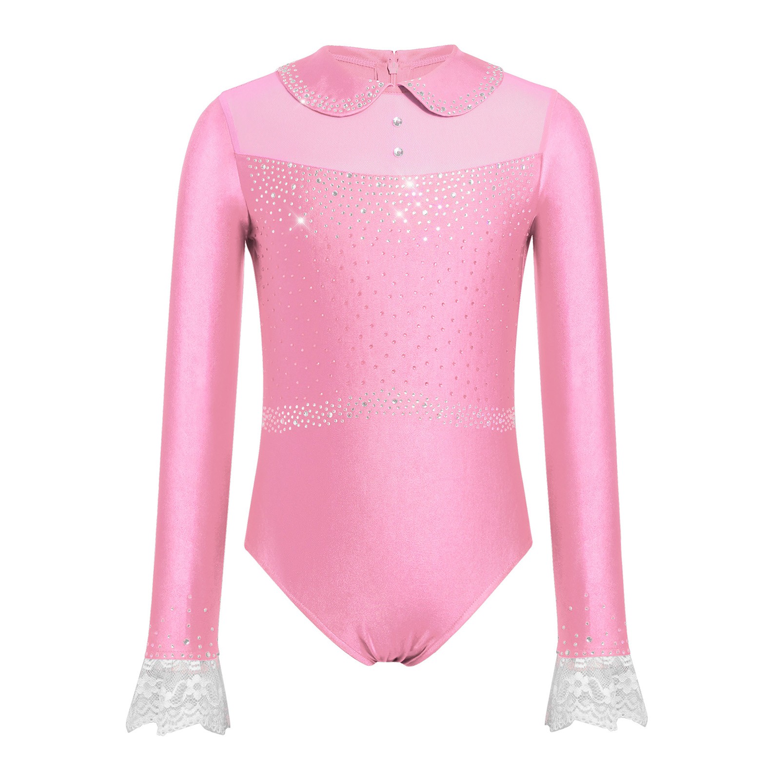 Girls Jumpsuit Festival Bodysuit Shiny Rhinestones Ballet Dance Unitard Yoga