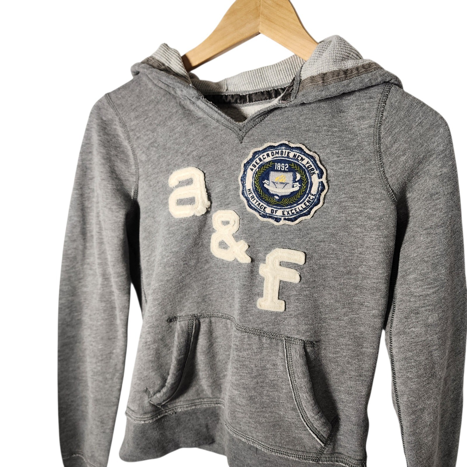 как выглядит Abercrombie Kids Grey Hoodie Patch Logo Pullover Casual Athleisure Size L фото