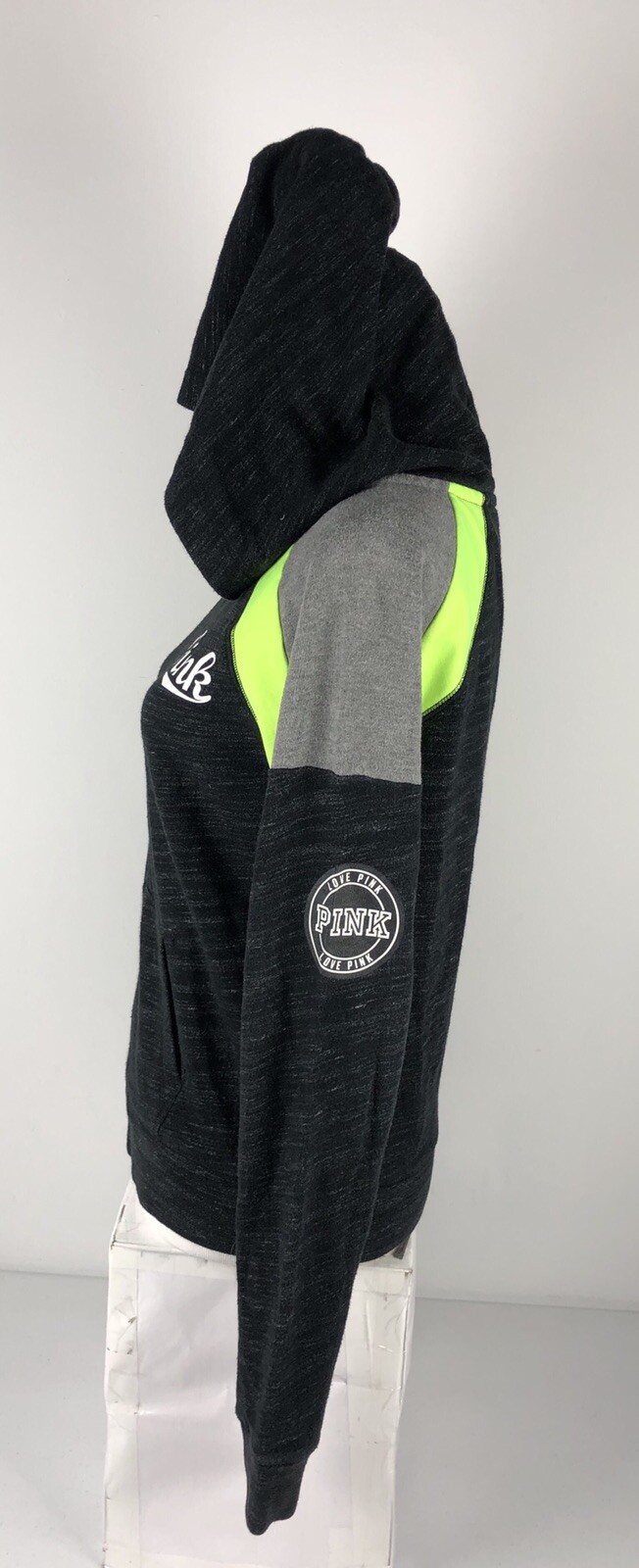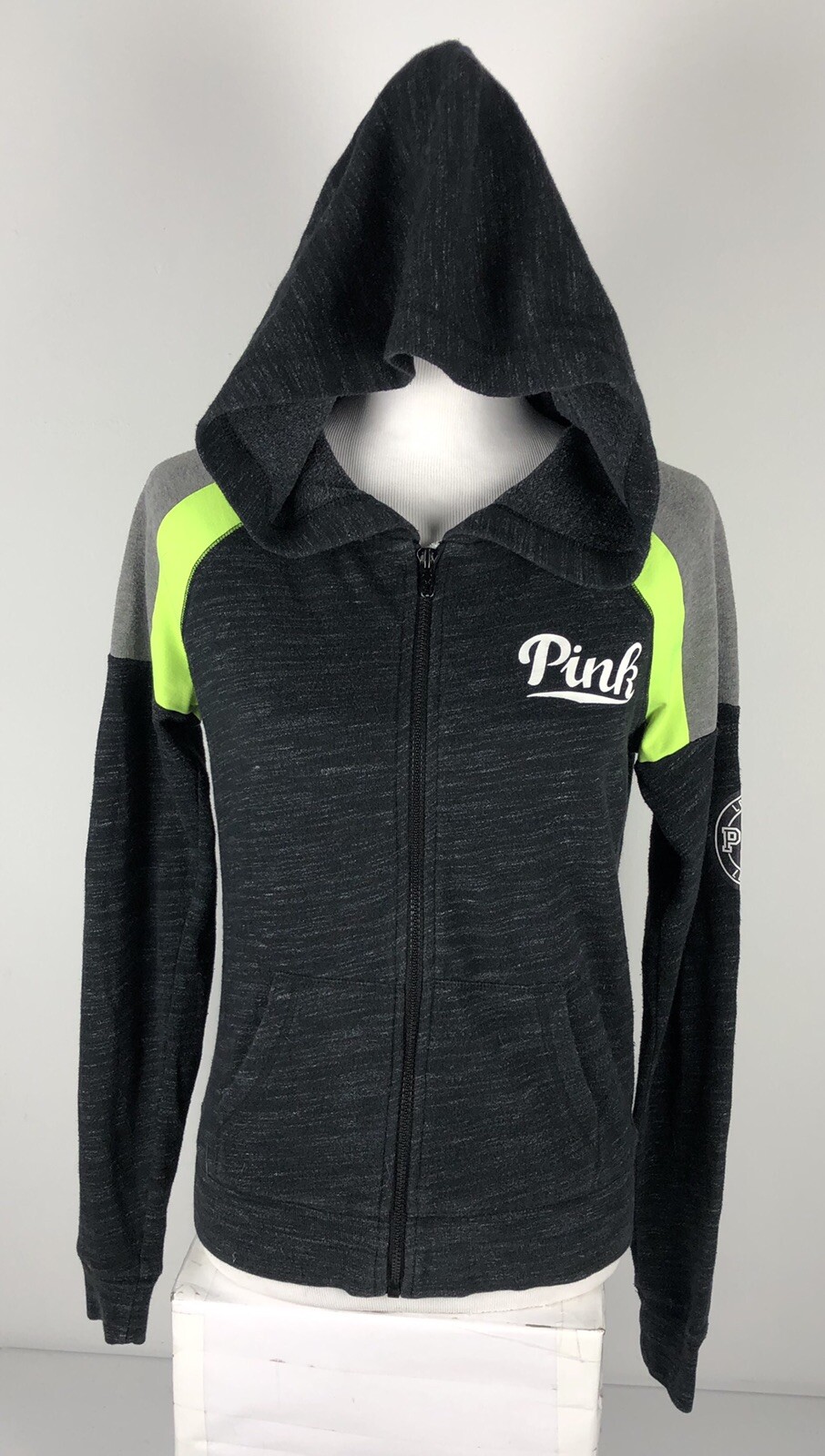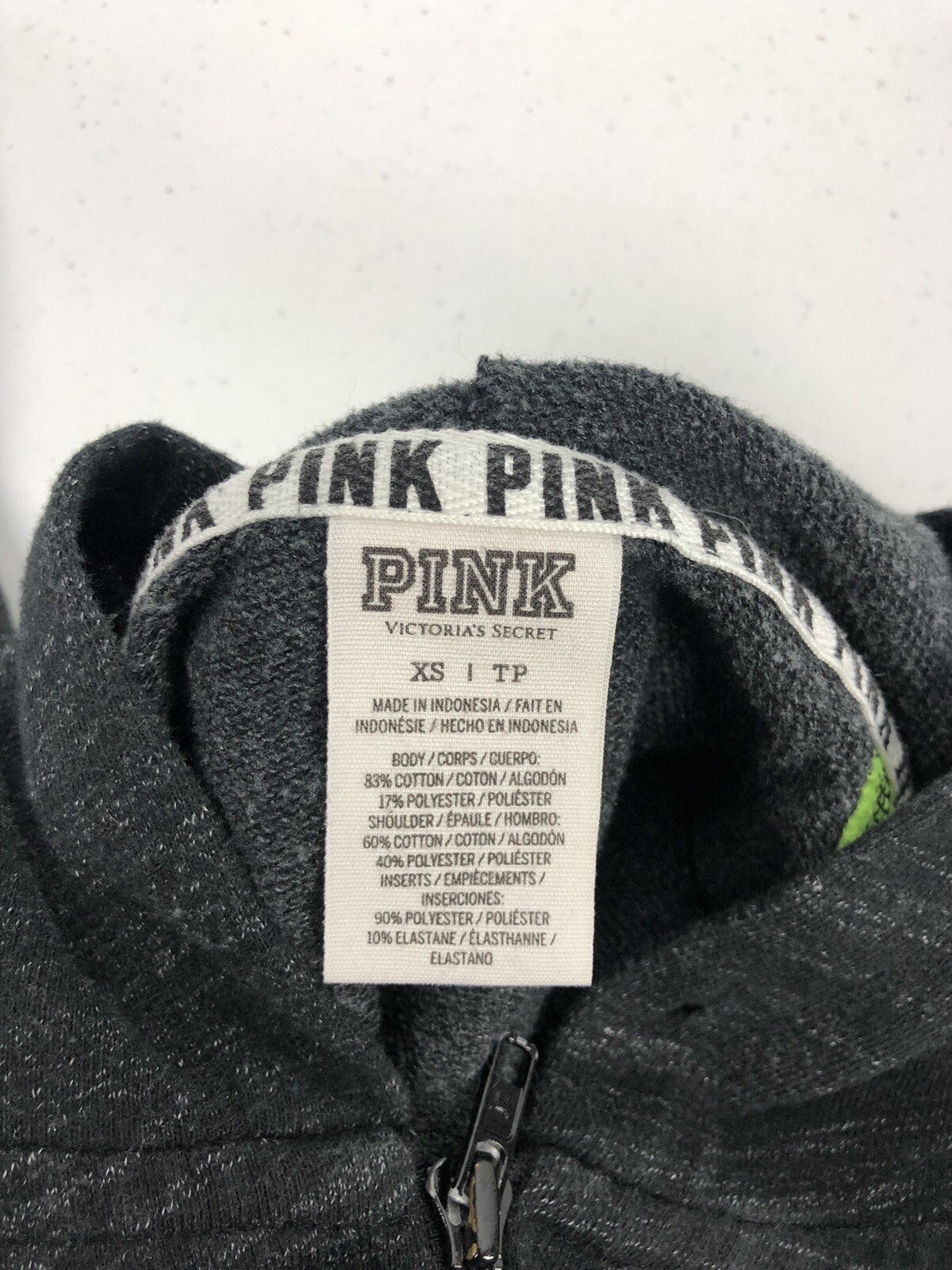 Victorias Secret PINK XS Sweatshirt Hoodie Gray Full Zip Spell Out Heathered