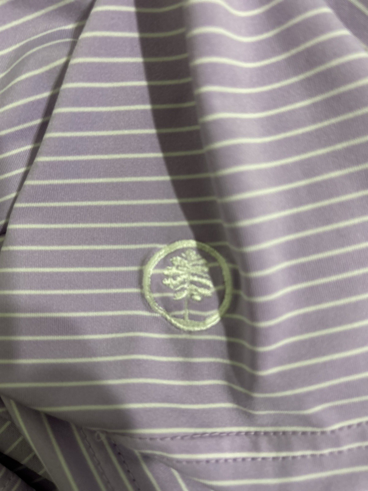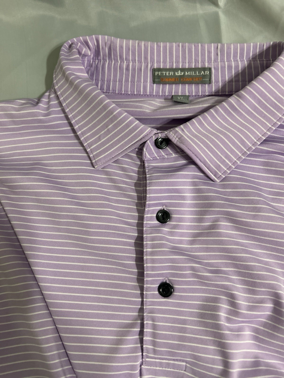 как выглядит Peter Millar Summer Comfort Polo Shirt Men s XL White Lavender Striped Golf фото