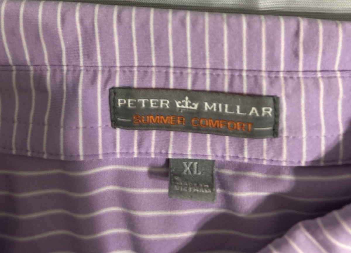 Peter Millar Summer Comfort Polo Shirt Men s XL White Lavender Striped Golf