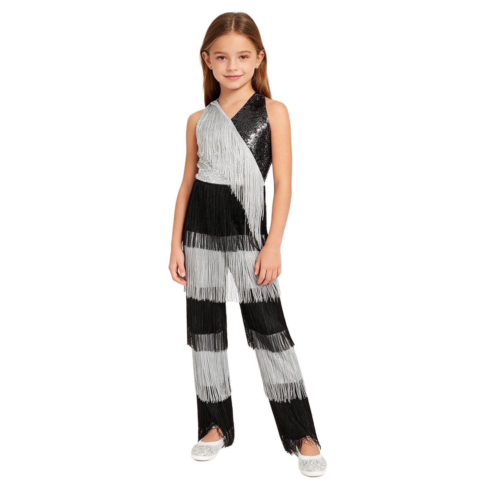 Girls Bodysuit Carnival Jumpsuit Halter Dancewear Sequins Celebration Theme