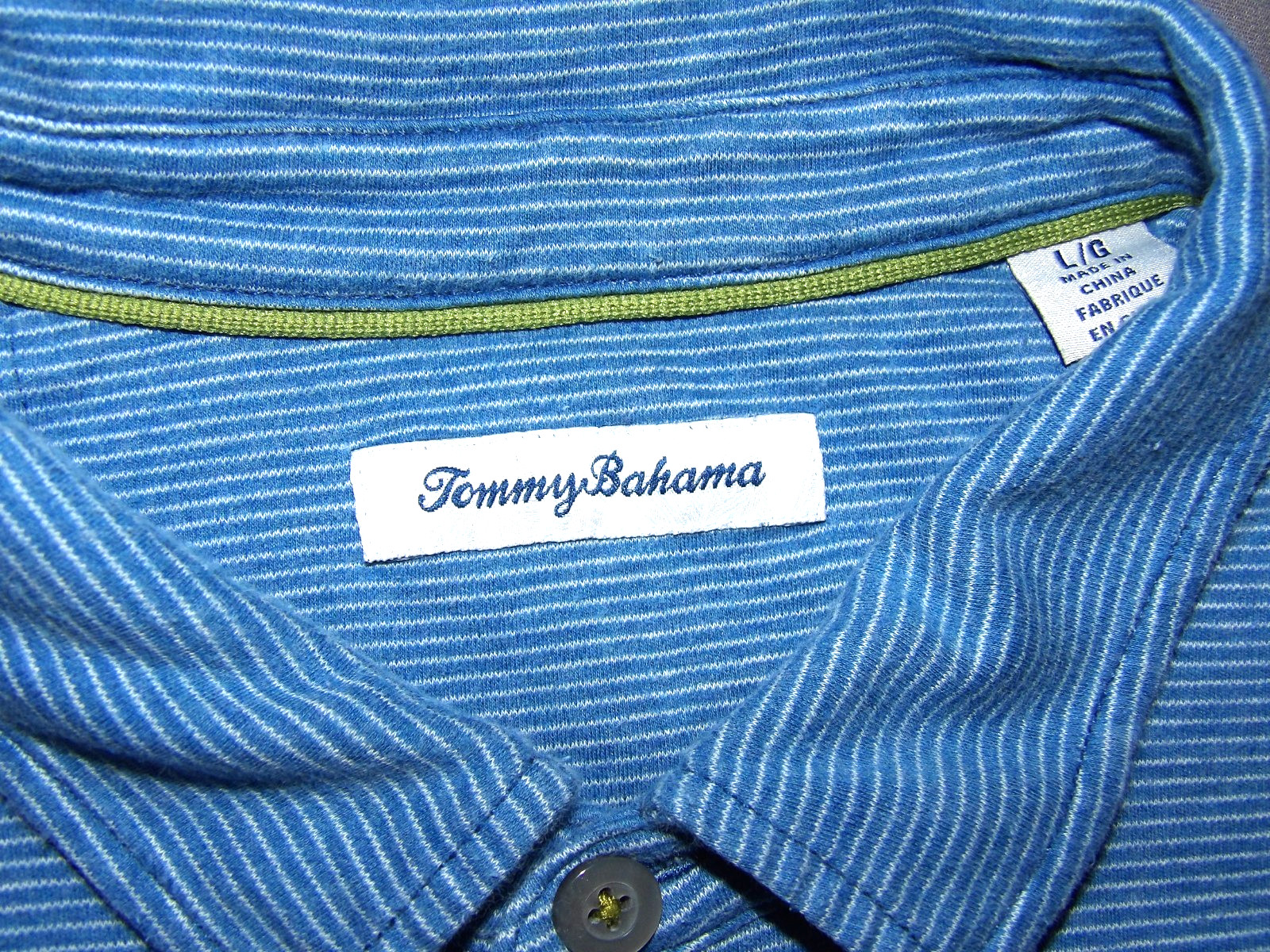 как выглядит Tommy Bahama Blue Striped Marlin Logo Smooth Cotton Polo Golf Shirt Mens Large фото