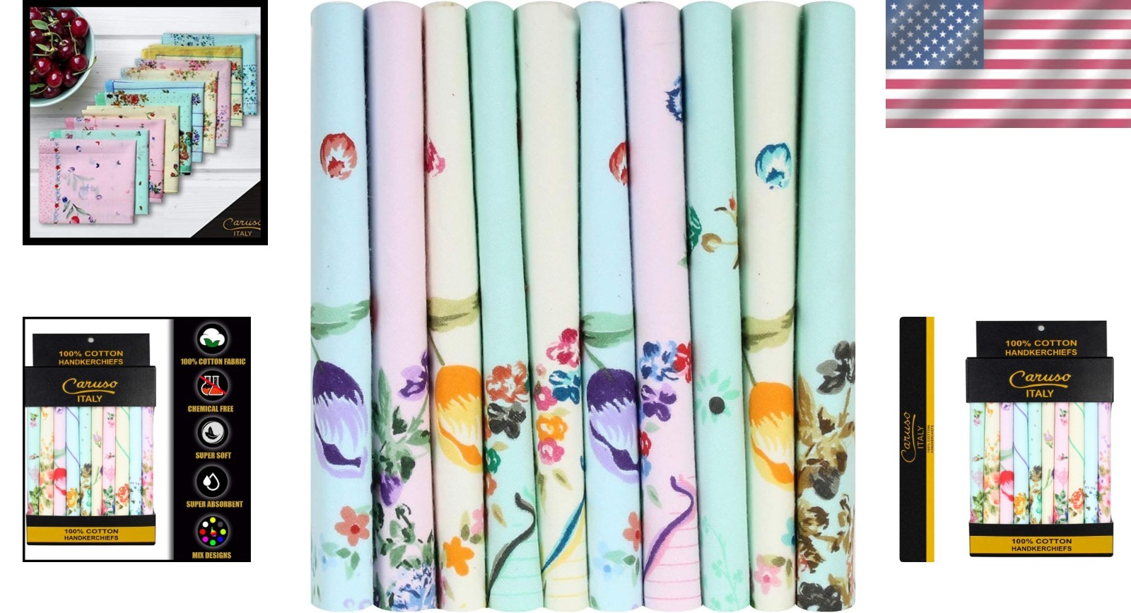 Elegant Floral Handkerchiefs - Pack of 10