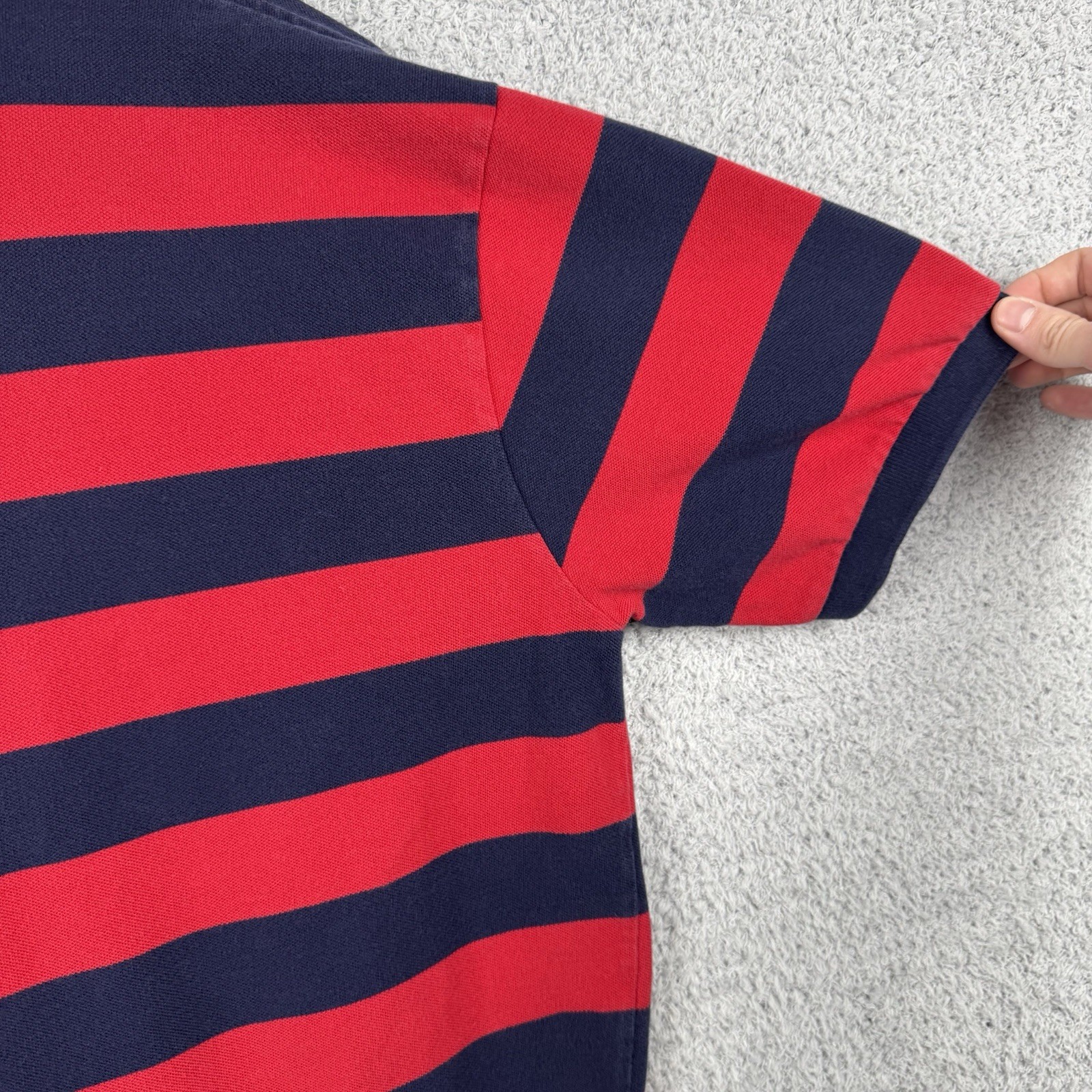 как выглядит Vintage Polo Ralph Lauren Short Sleeve Rugby Shirt Mens Size XL Red Blue Striped фото