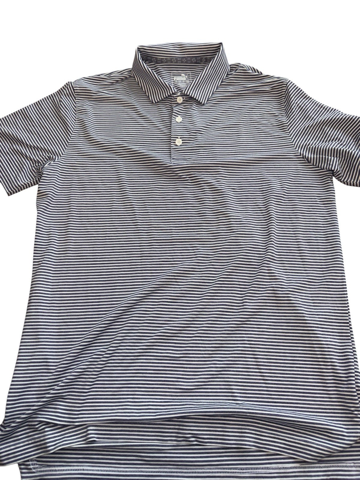 Rare Sample Puma Navy and White Striped Polo Shirt.