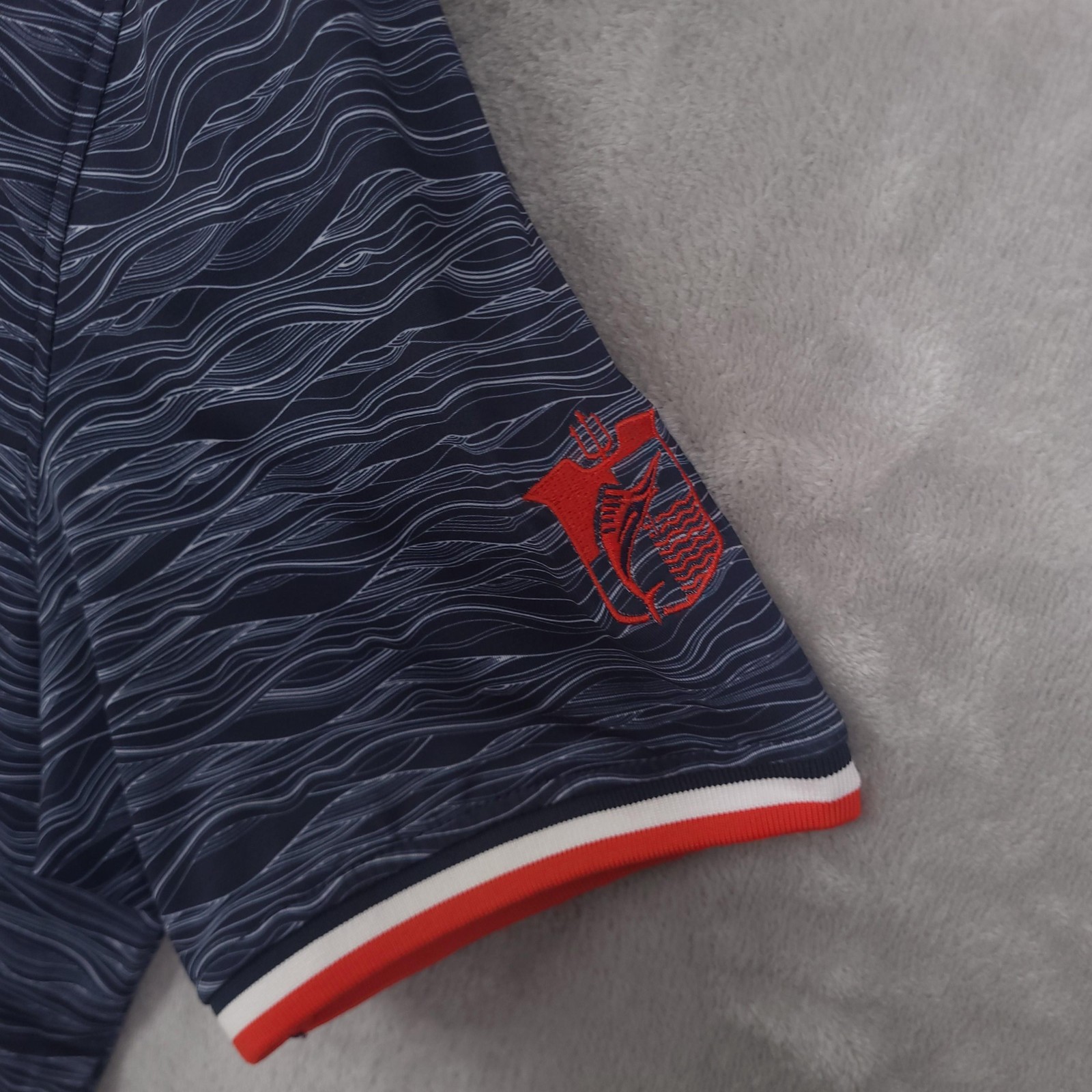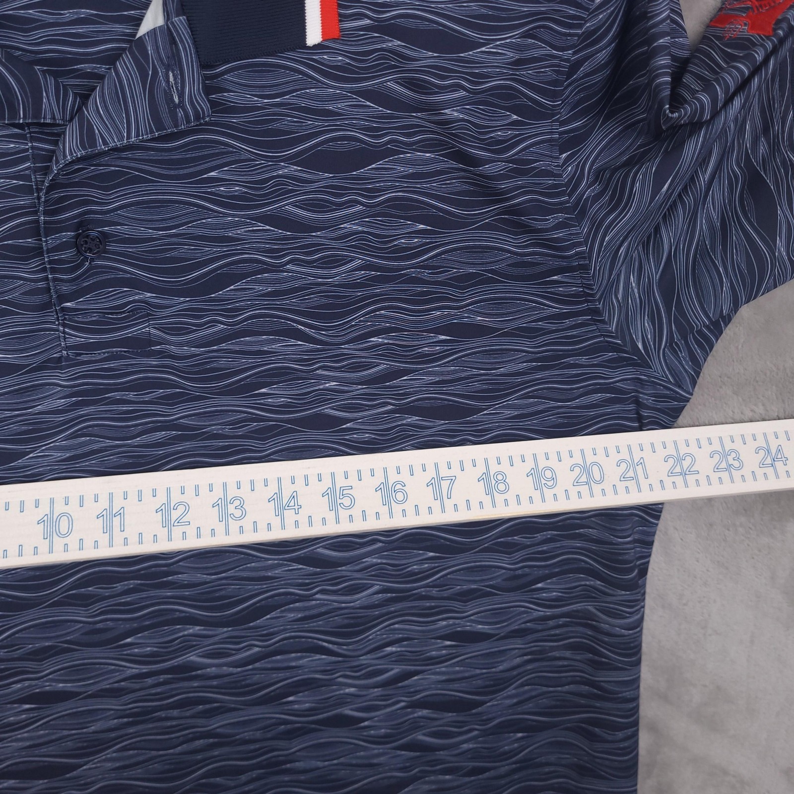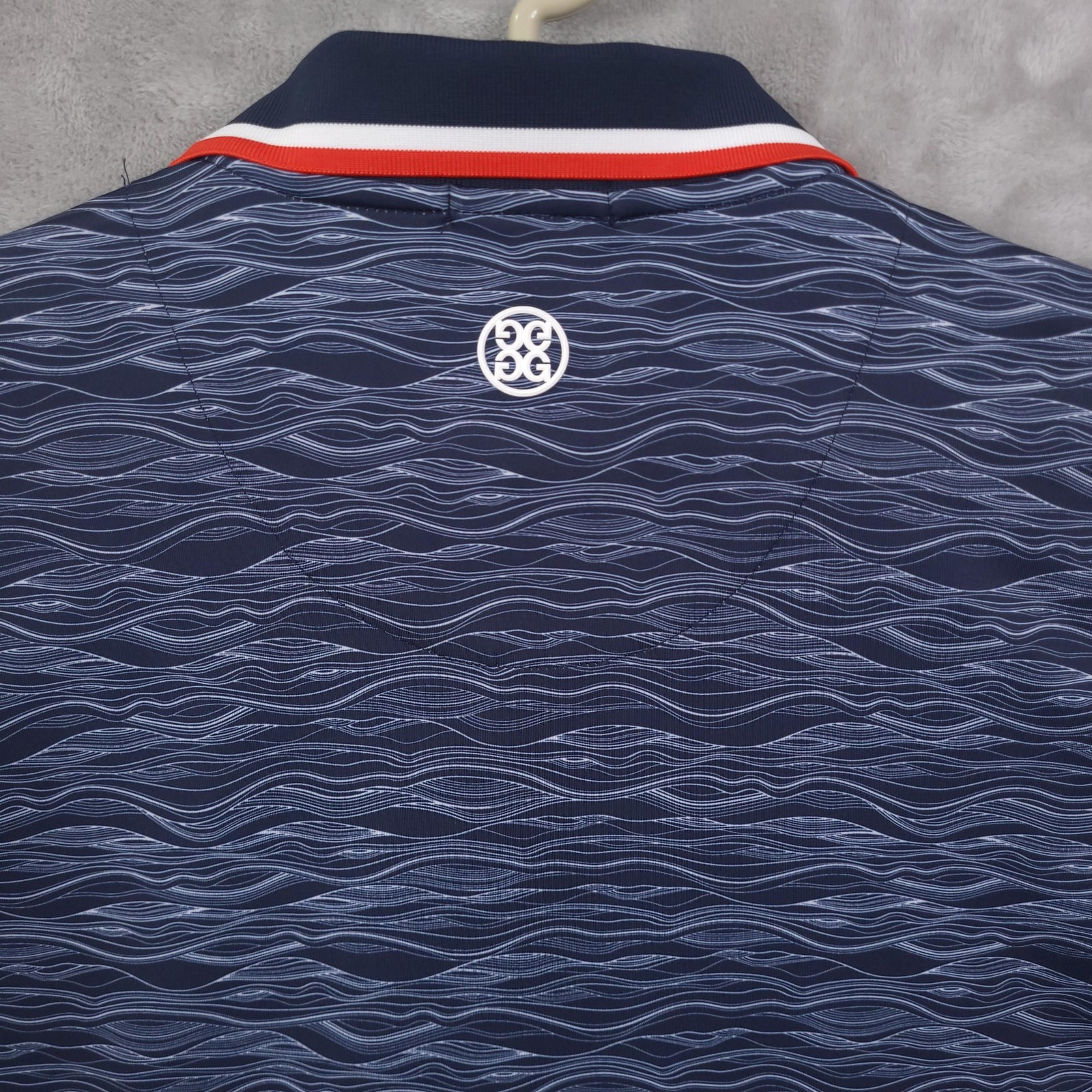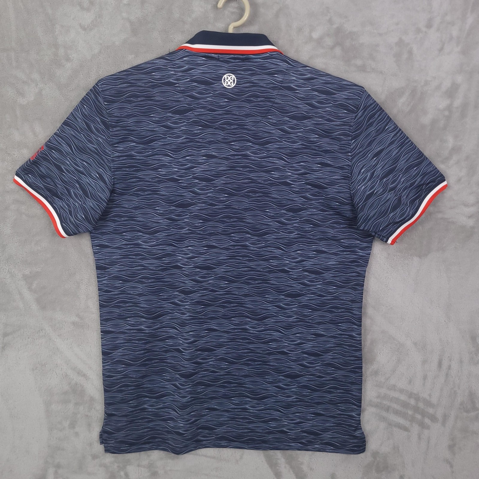 как выглядит G/FORE Polo Shirt Mens Large Blue Wave Print Golf Performance Stretch Casual фото