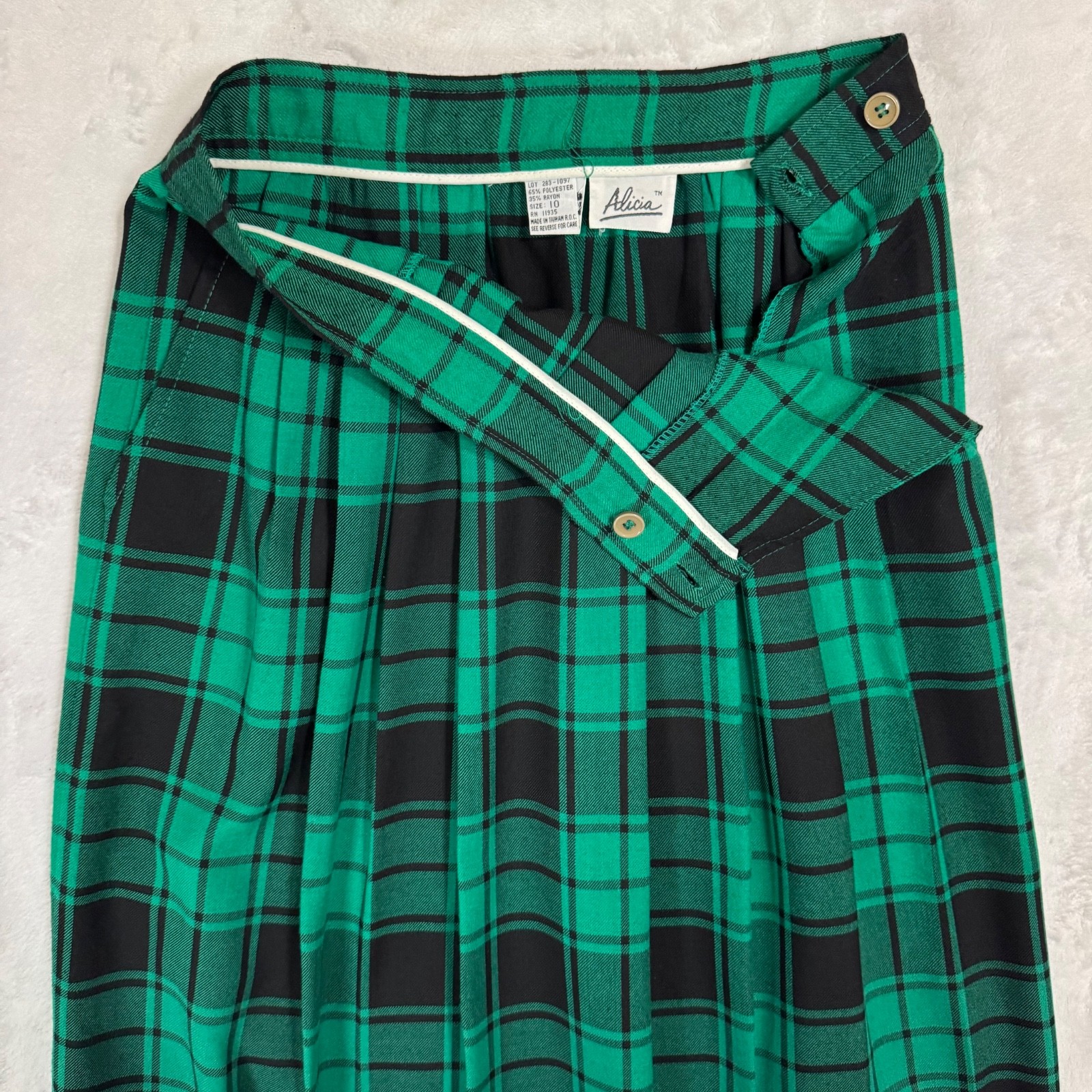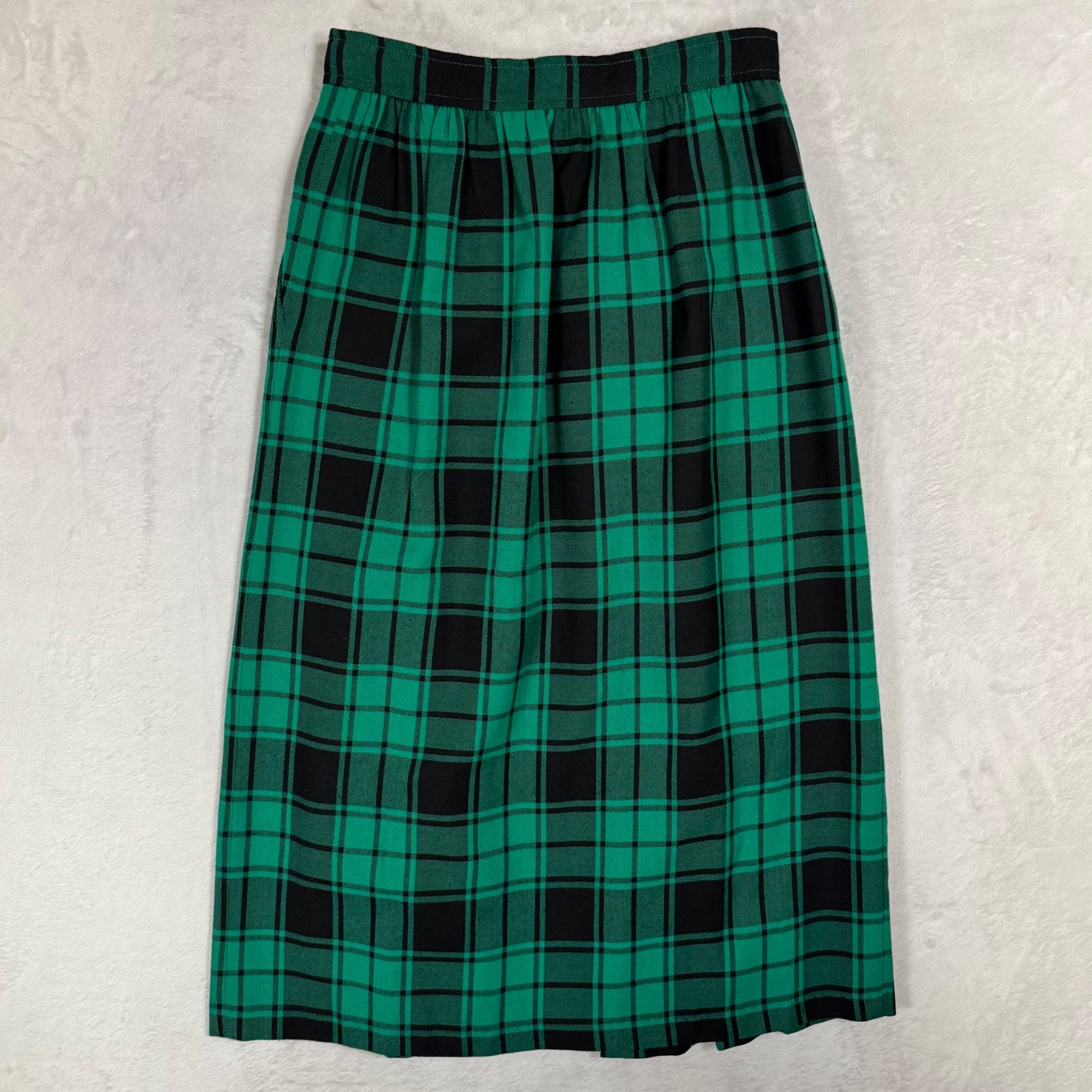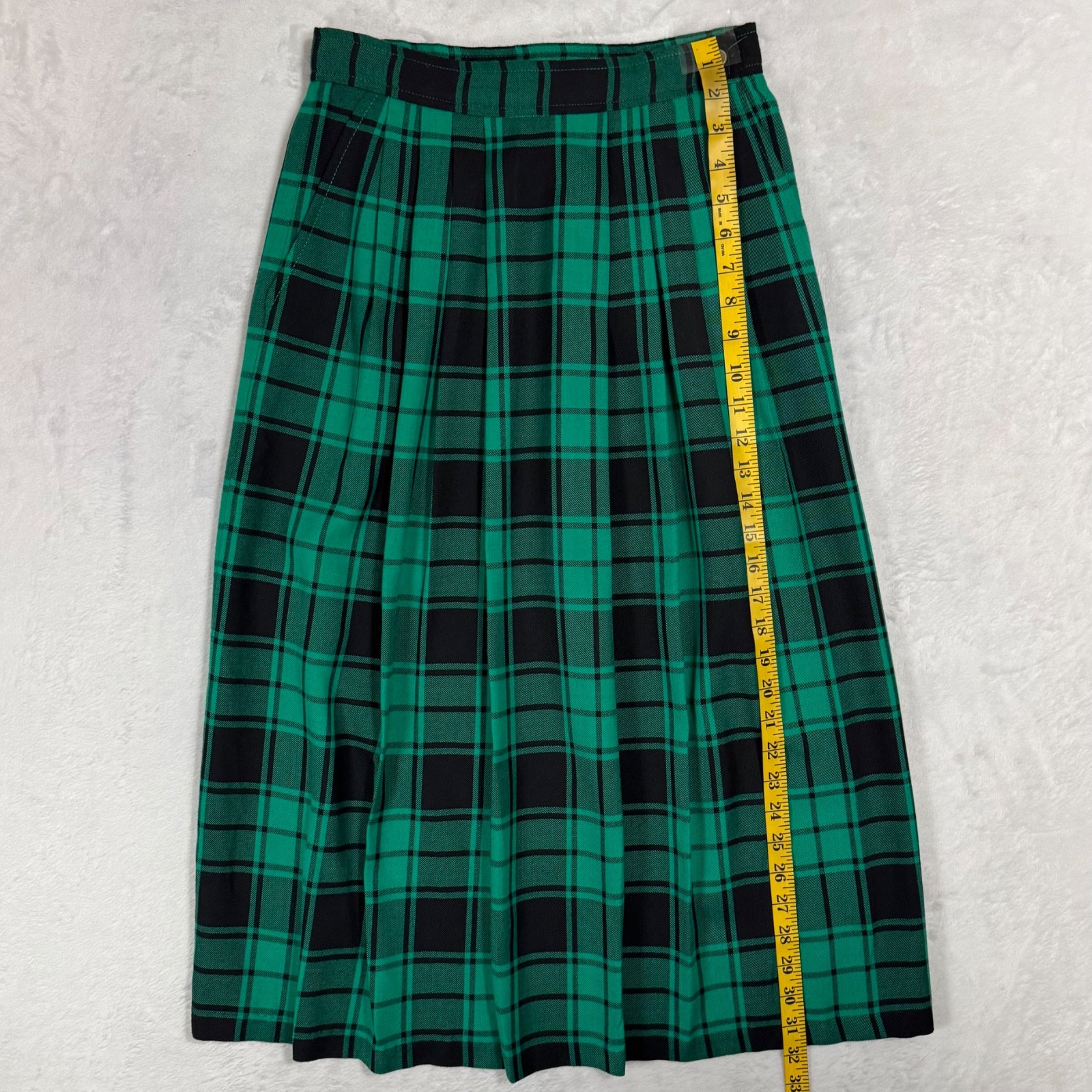 Vintage Tartan Green Plaid Pleated Midi Skirt 10 Fit Size 2 Academia Preppy