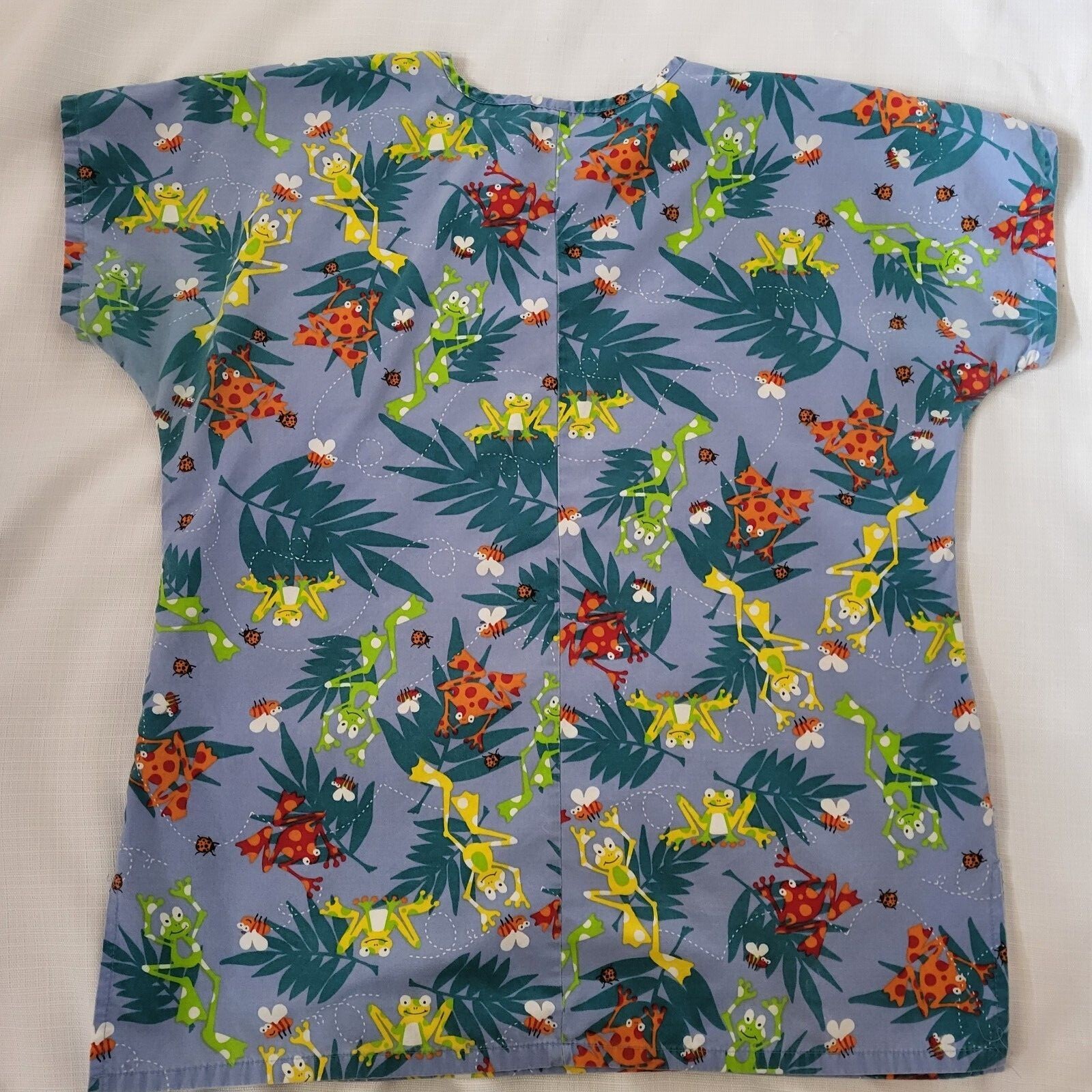 Womens Small Scrub Top Yellow Orange Green Happy Spotted Frogs Ladybugs Bees