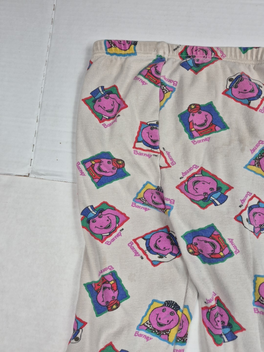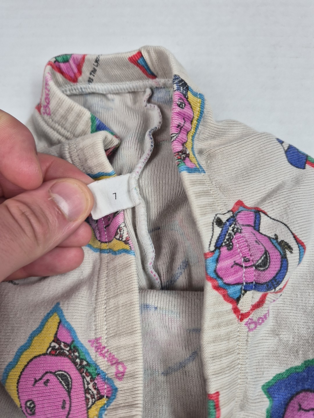 как выглядит Vintage Barney Bop Pajamas Two Piece Set Size 7 AOP 1990s FLAWS STAINS Retro фото