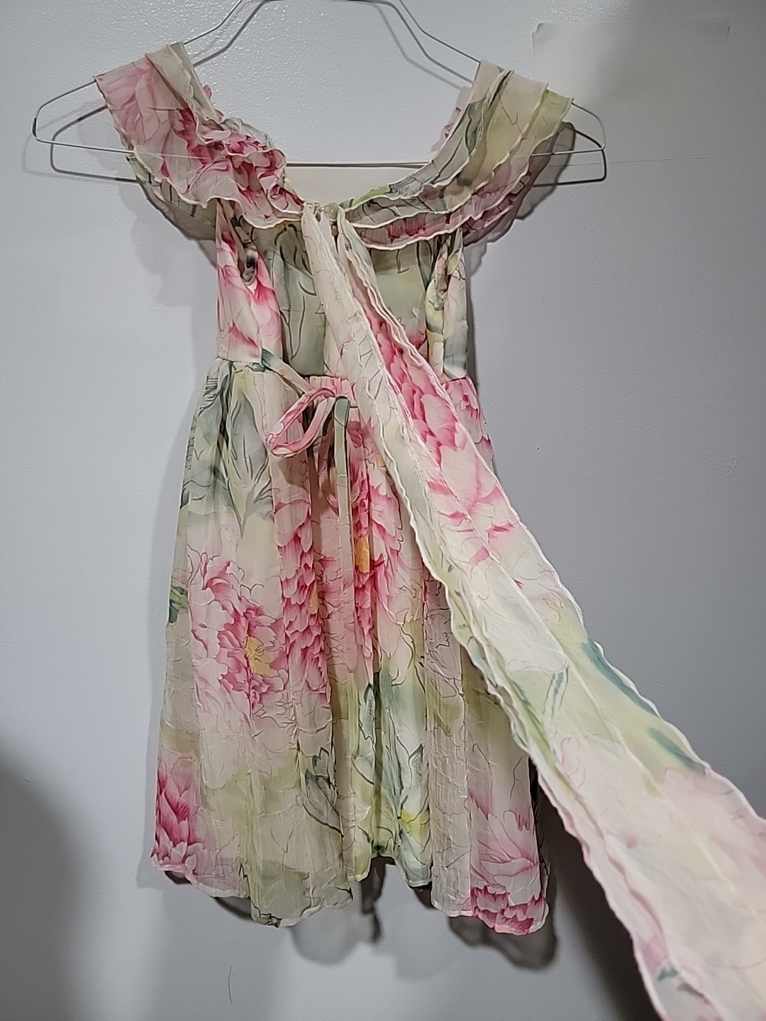 как выглядит Biscotti Collection Girls Dress Size 3 Cream Floral Pink Flowers Long Ribbon Z фото