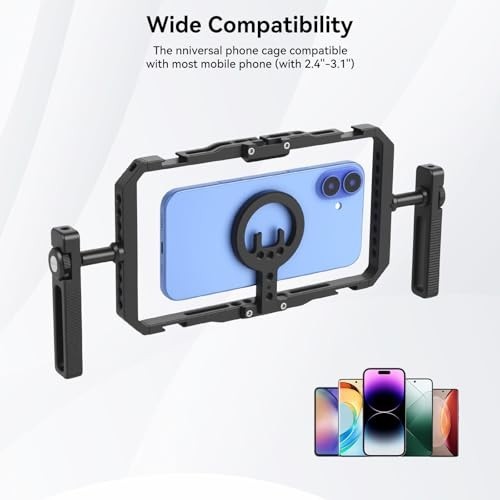 Universal Quick Release Phone Cage Video Rig Kit - Aluminum Stabilizer for Vlogg