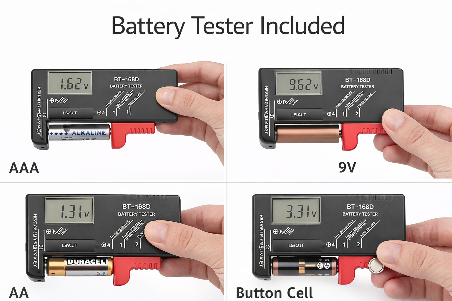Battery Organizer with Tester for AA AAA C D 9V Button Cell 136 Battery Case Box