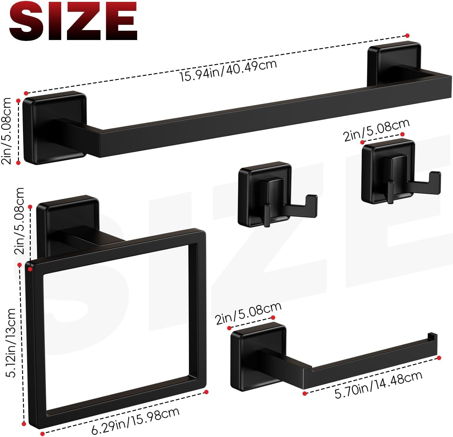 5-Pieces Matte Black Bathroom Hardware Accessories Set, SUS304 Stainless Steel T