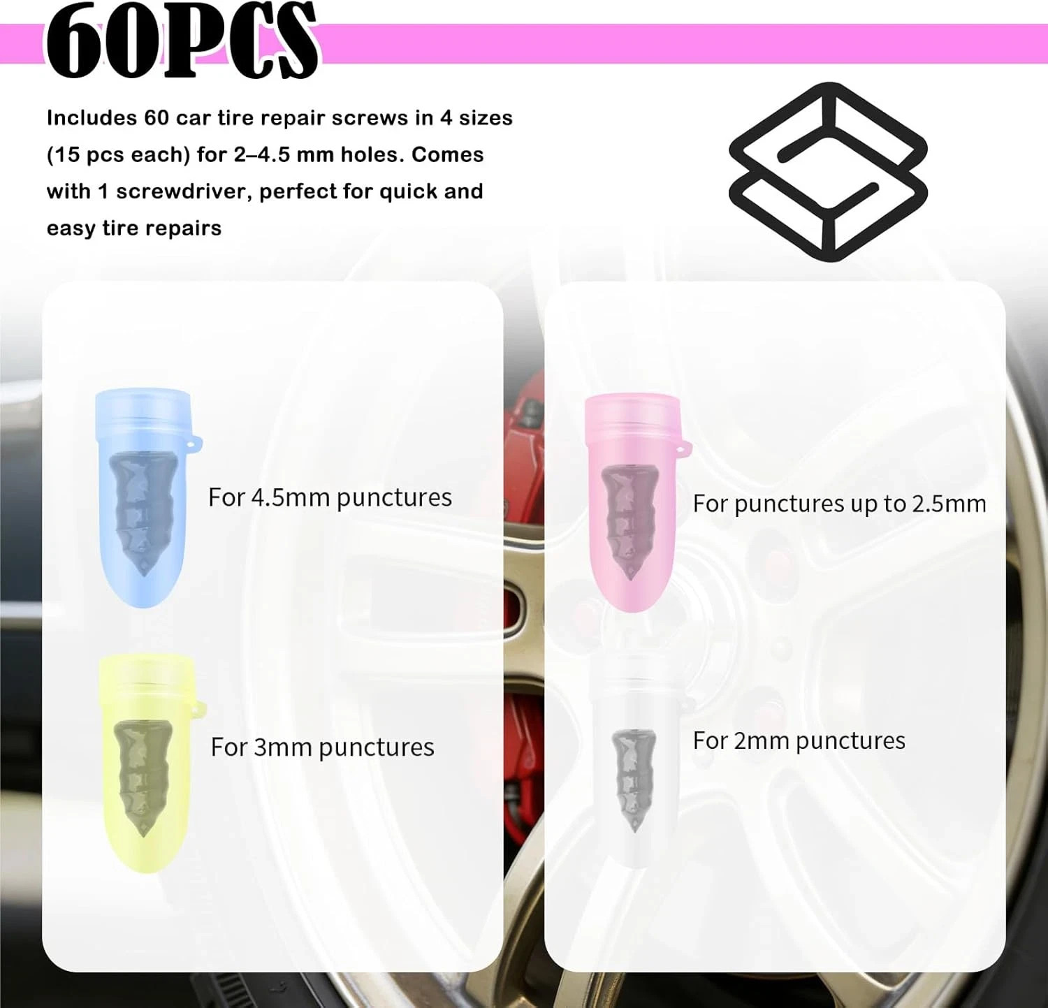 как выглядит 2026 Upgraded 60PCS Screw in Tire Plugs,Self-Service Tire Plugs Kit with Screwdr фото