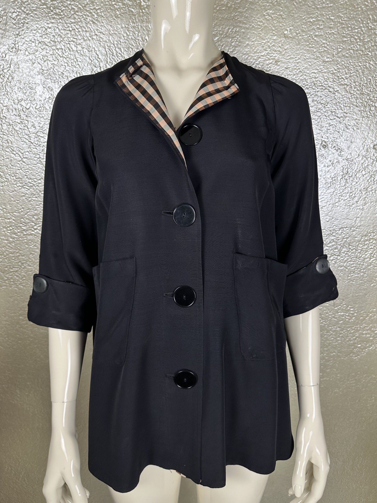 как выглядит Vintage 1940s Handmade Black Satin Rayon Jacket Lightweight " Sleeve Petite фото