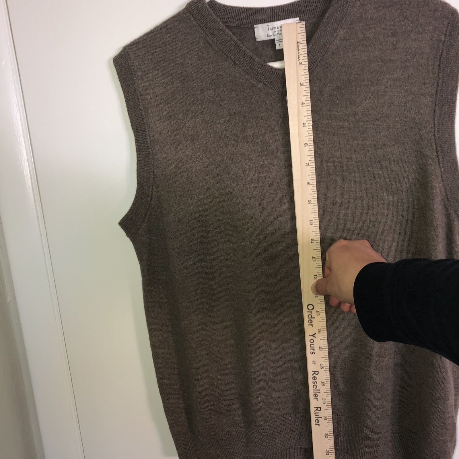 как выглядит Turnbury Sweater Vest Mens L Extra Fine Merino Wool Brown V Neck Classic фото