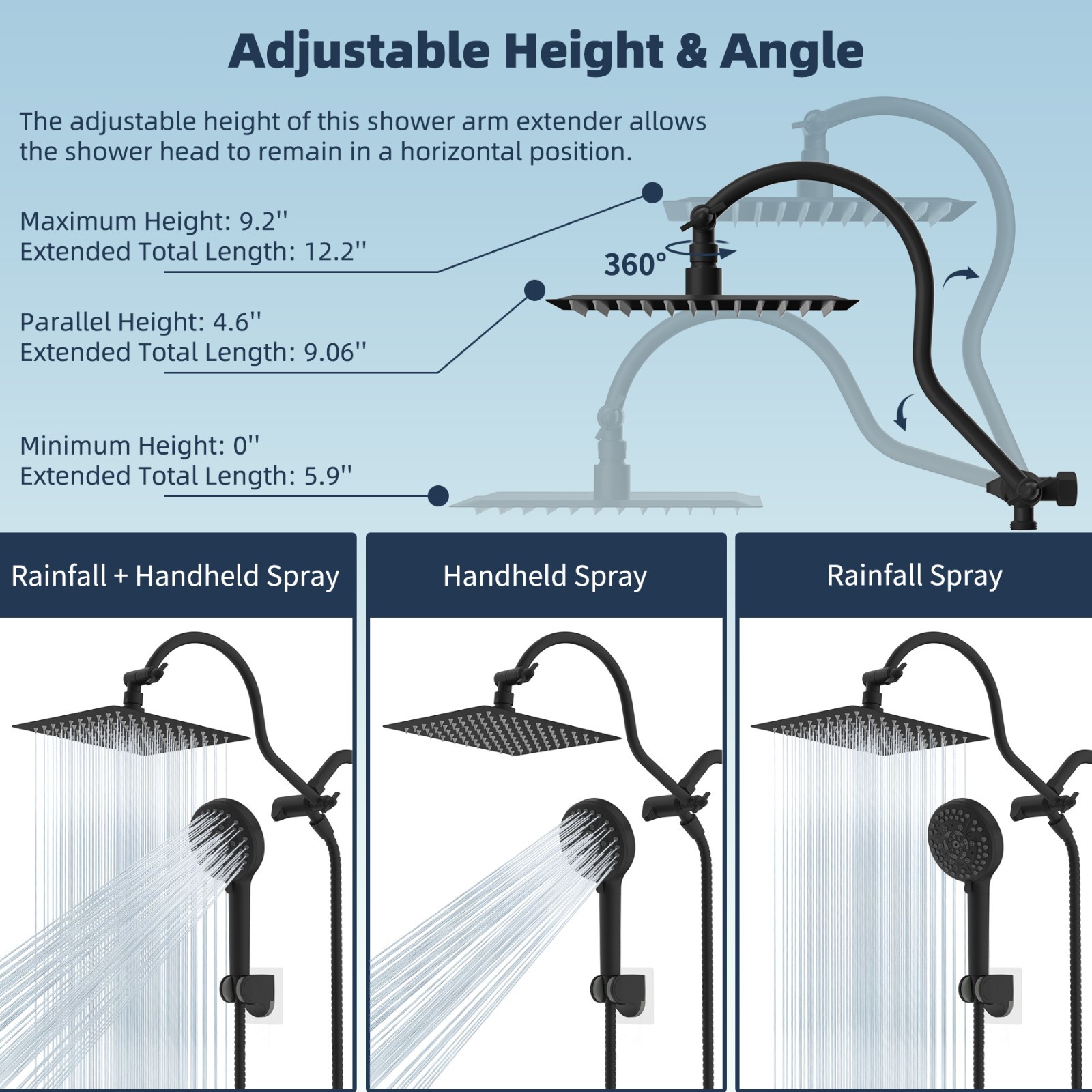 Особенности: Adjustable Angle, Bacteria Resistant, Corrosion Resistant, Detachable Hose, High Pressure, Rainfall