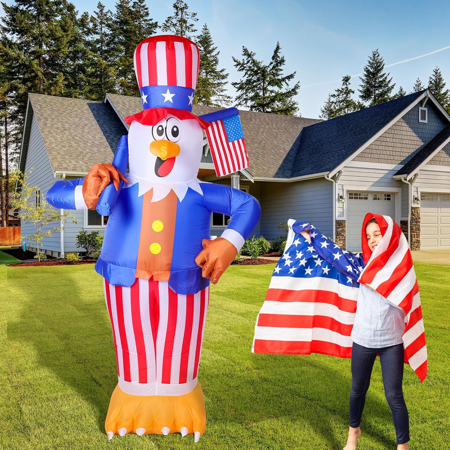 6.89 Foot Tall Patriotic Independence Day 4Th of July Inflatable Eagle Lighted B