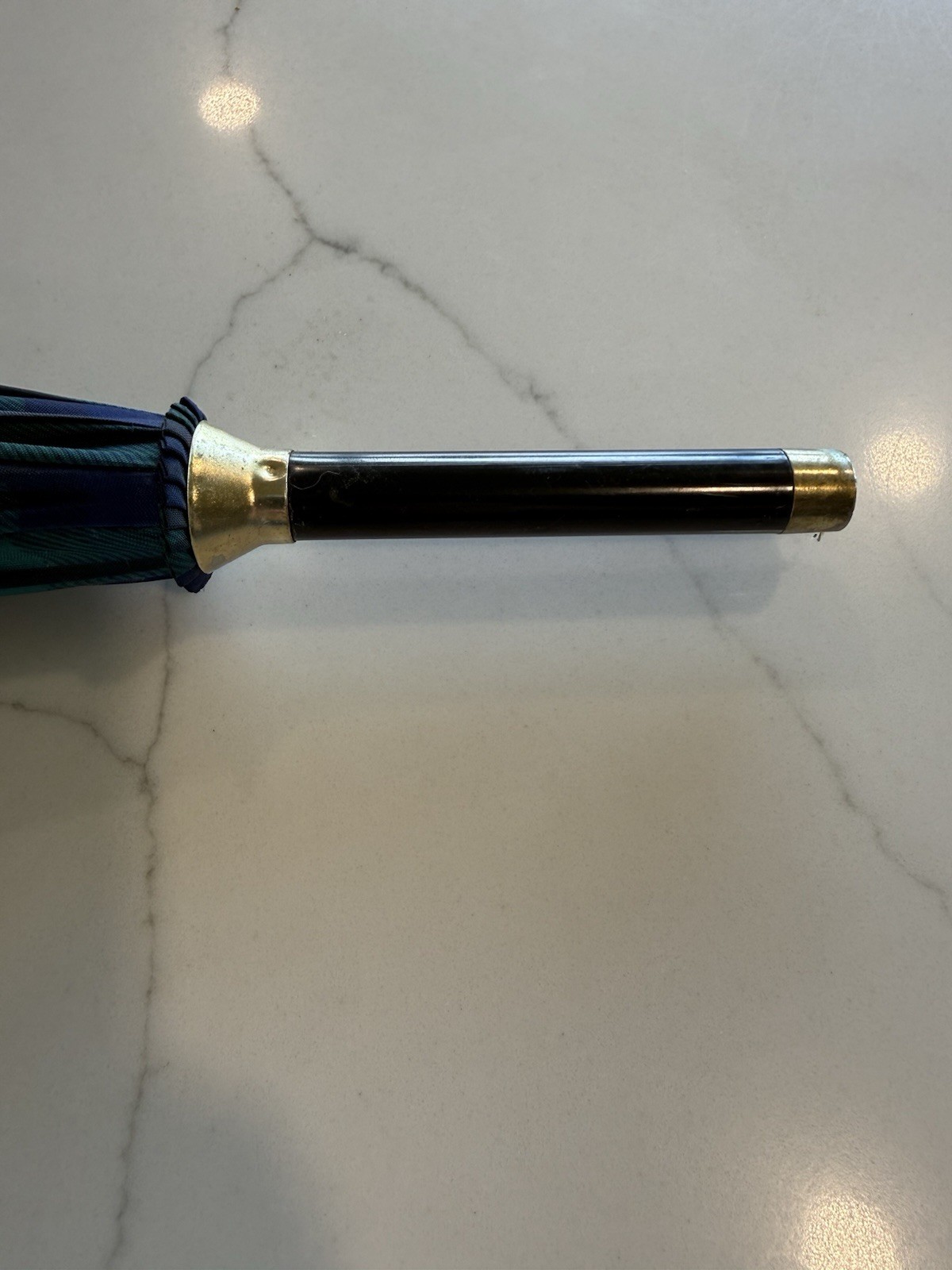 Aramis Umbrella Dog Head Handle Tartan Blue Green Plaid Scottie Schnauzer LARGE