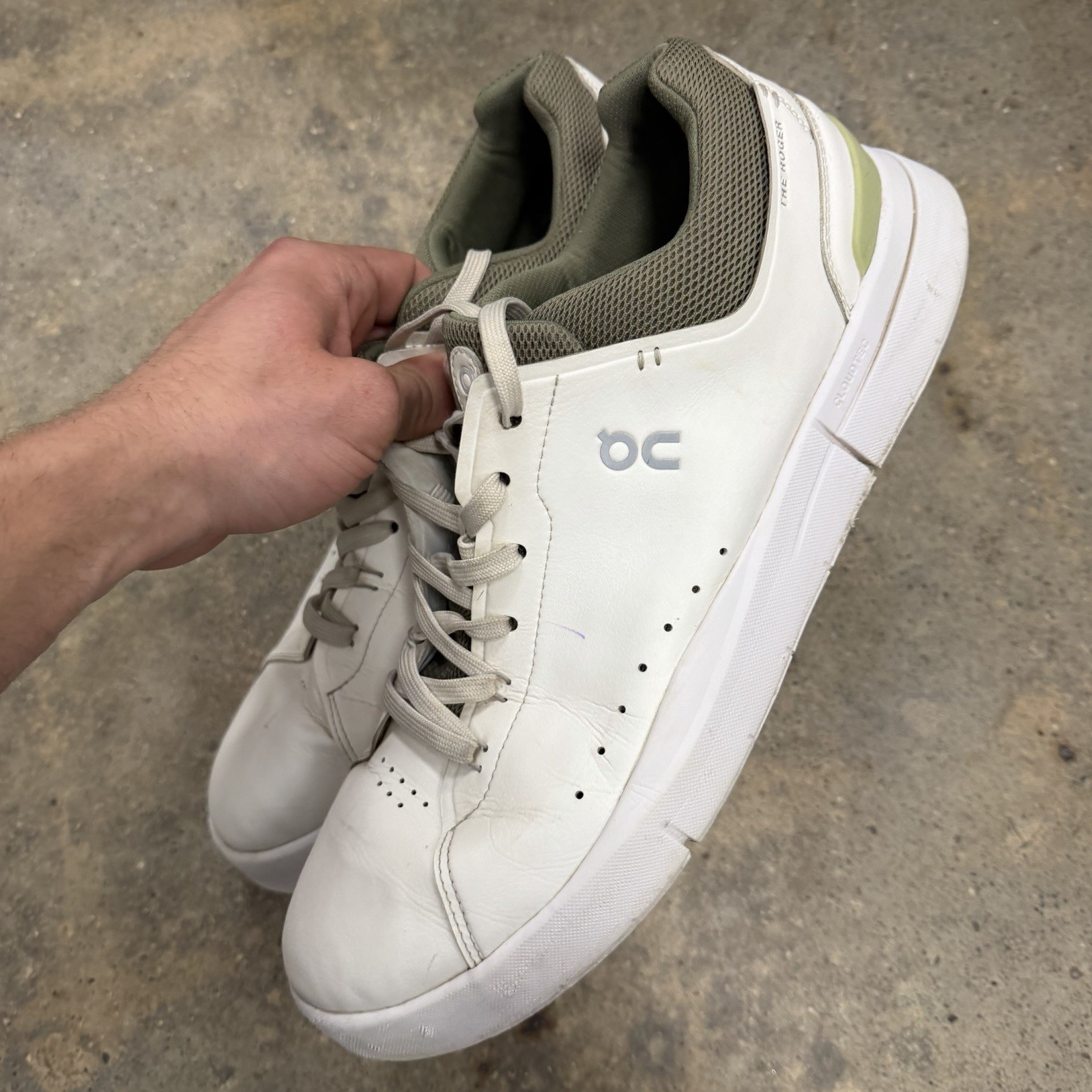 как выглядит On the Roger Advantage Mens Size 13 White/Olive Tennis Shoes 3MD10641528 фото