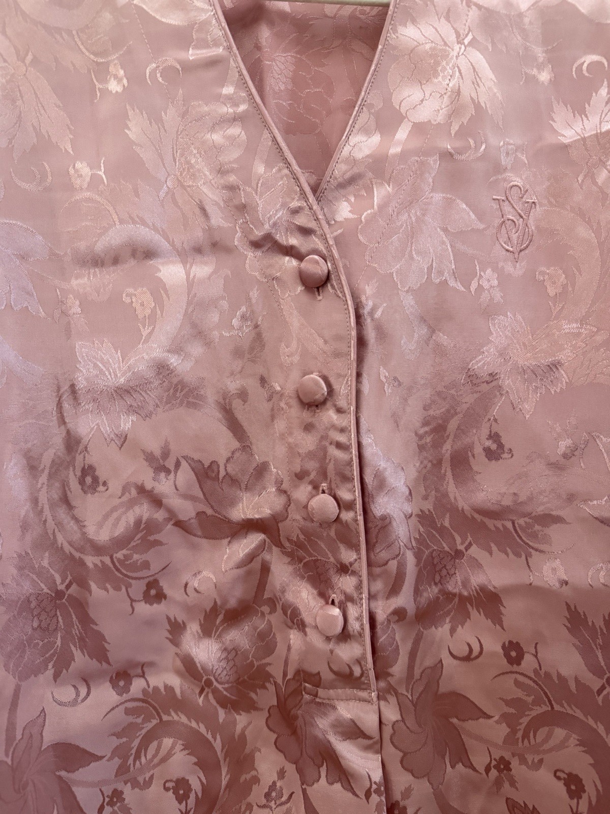 как выглядит Vintage Victorias Secret Gold Label S Pink Floral Satin Night Shirt Embossed фото