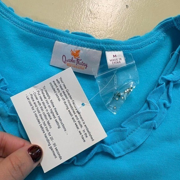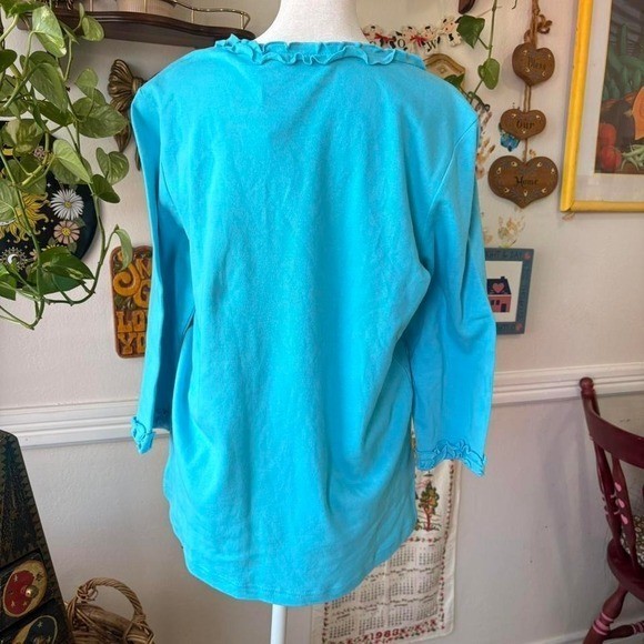 как выглядит Vintage Quacker Factory Women M Blue 2 Pc Set Embroidered Cat Rhinestone Ruffle фото