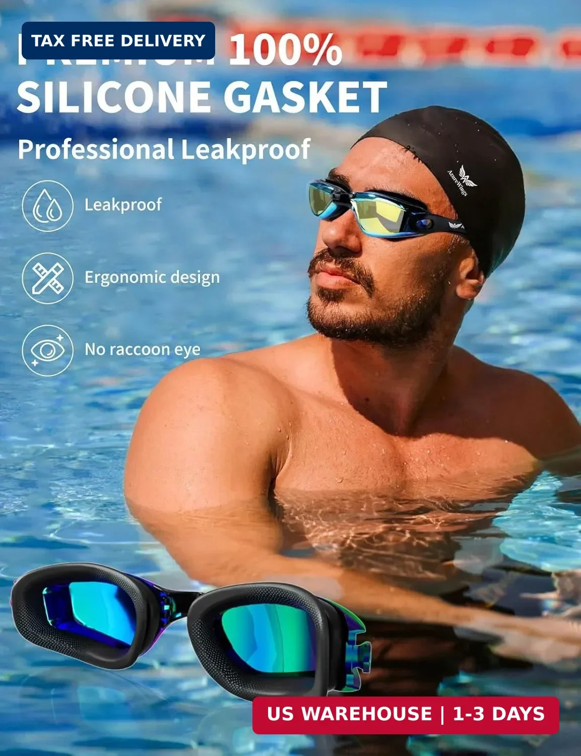 7 in 1 Swim Goggles Swim Cap for Men Women,No Leak Anti-Fog UV, Wide Visio H