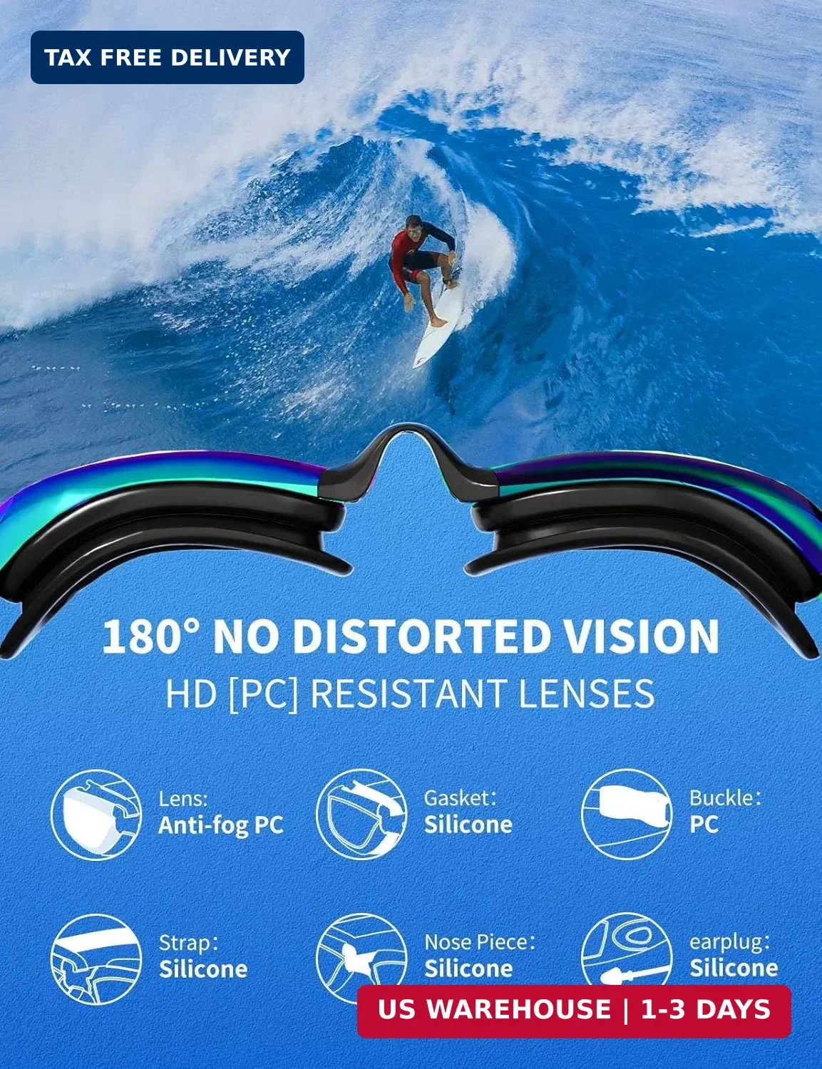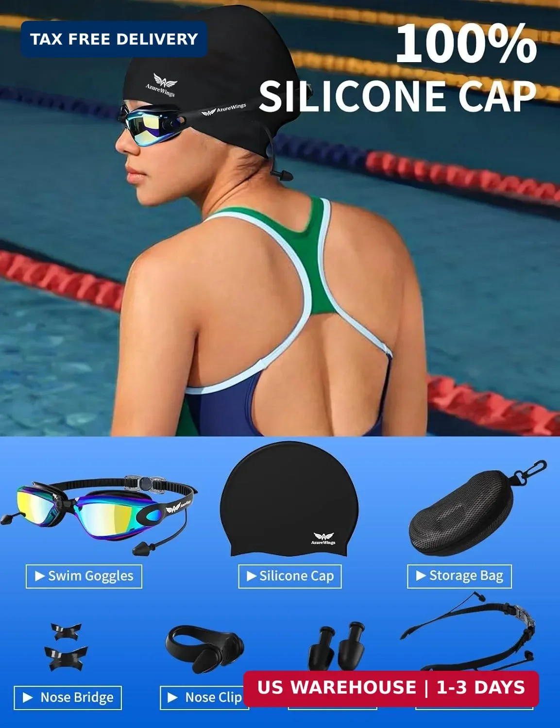 Included Components: EVA zipper case, Nose Bridge, Nose clip earplugs, Swim cap, Swimm