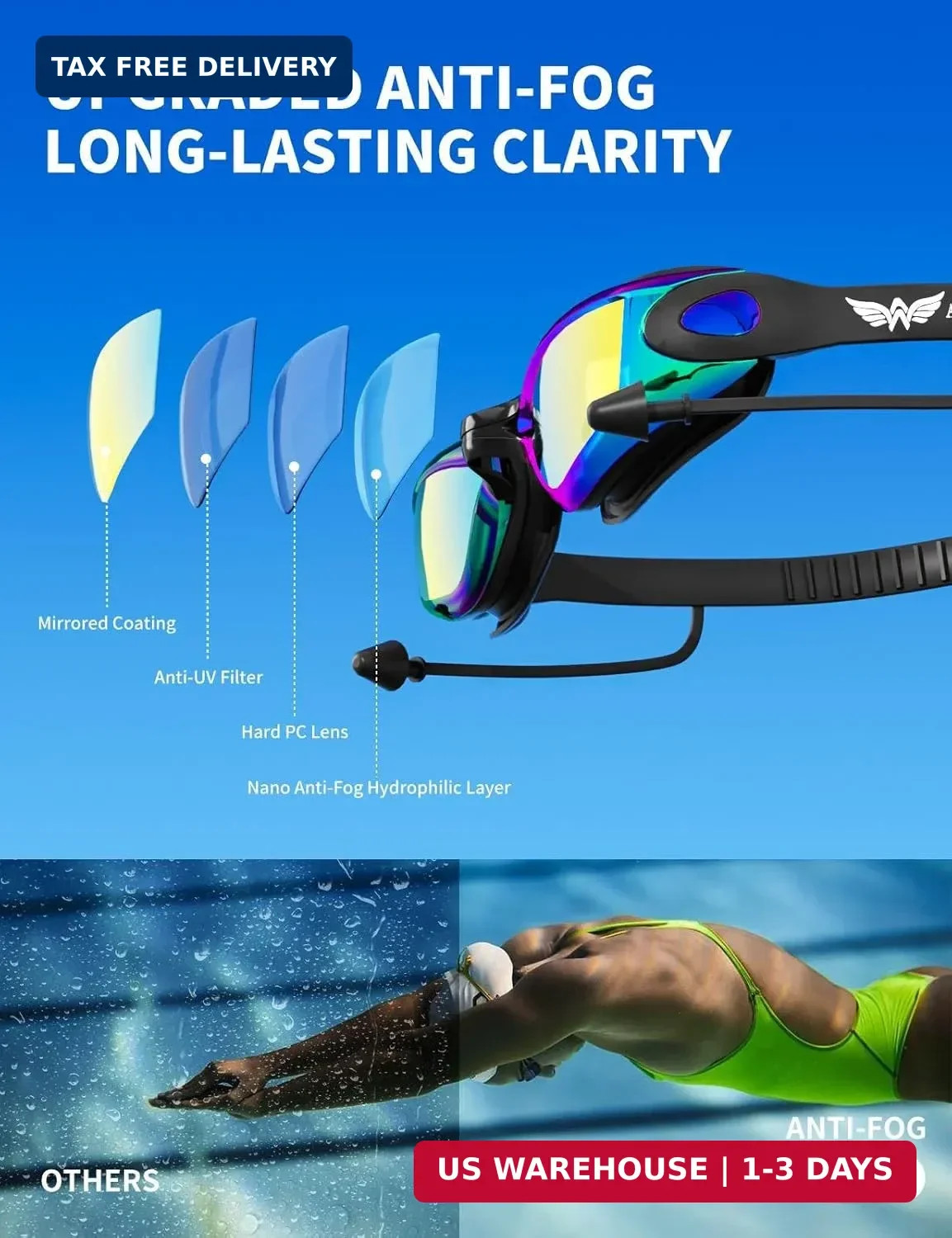 Product Care Instructions: Never wipe inside lenses before swimming. Do not flush or soak fo