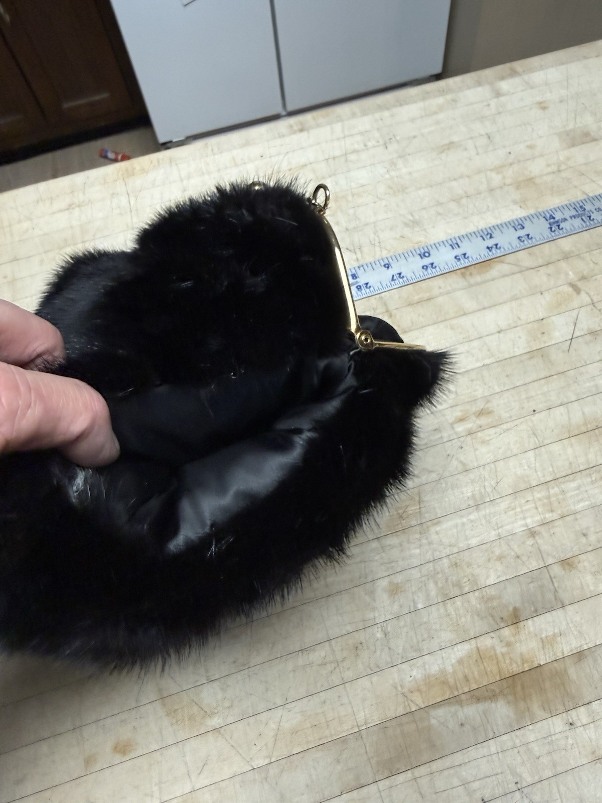как выглядит Vintage Dark Brown/ Black Fur Muff Hand Warmer Purse фото