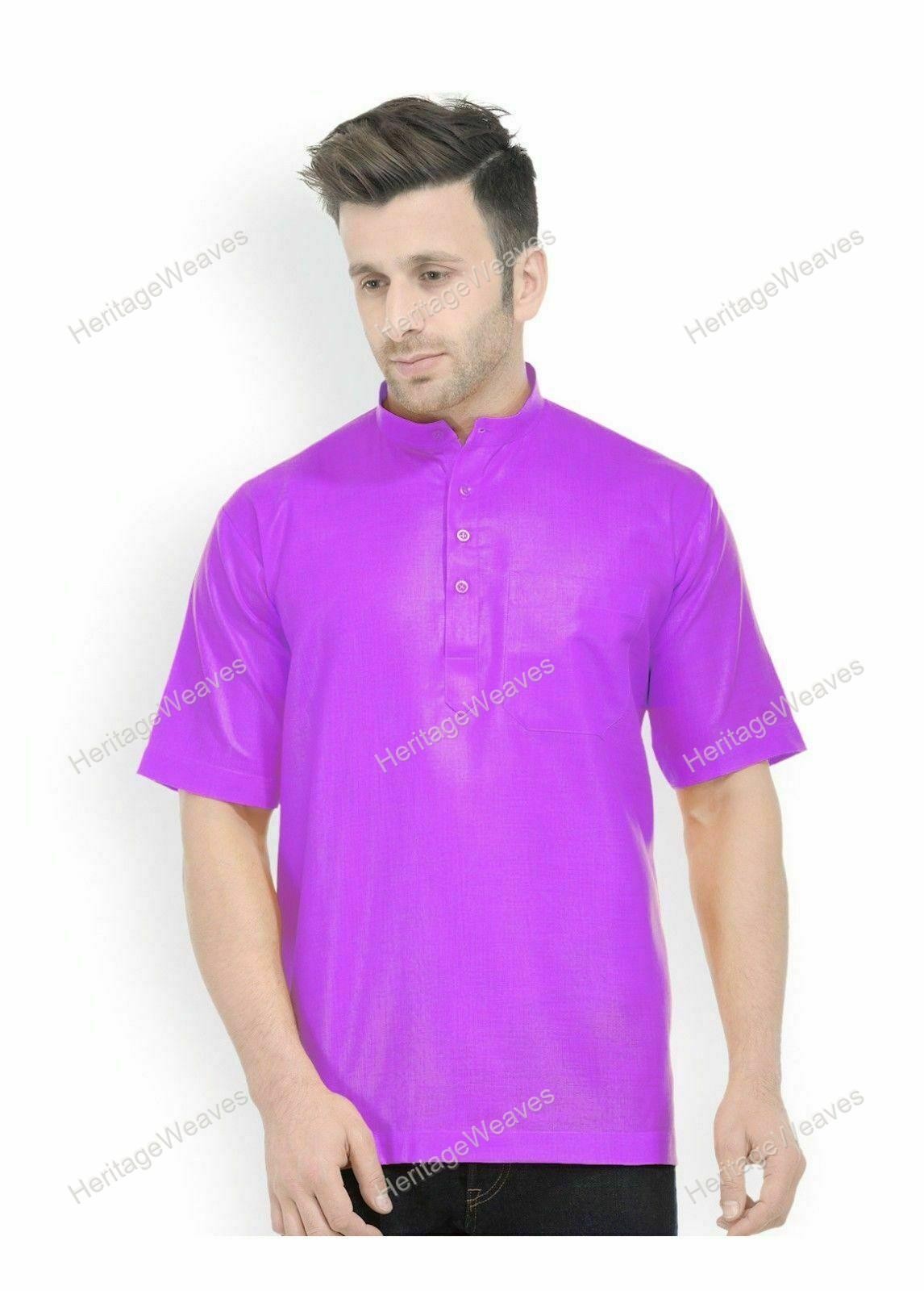 Mens Kurta Mens Cotton Shirt Top Tunic Kurta Solid Half Sleeve Plus Size Kurta