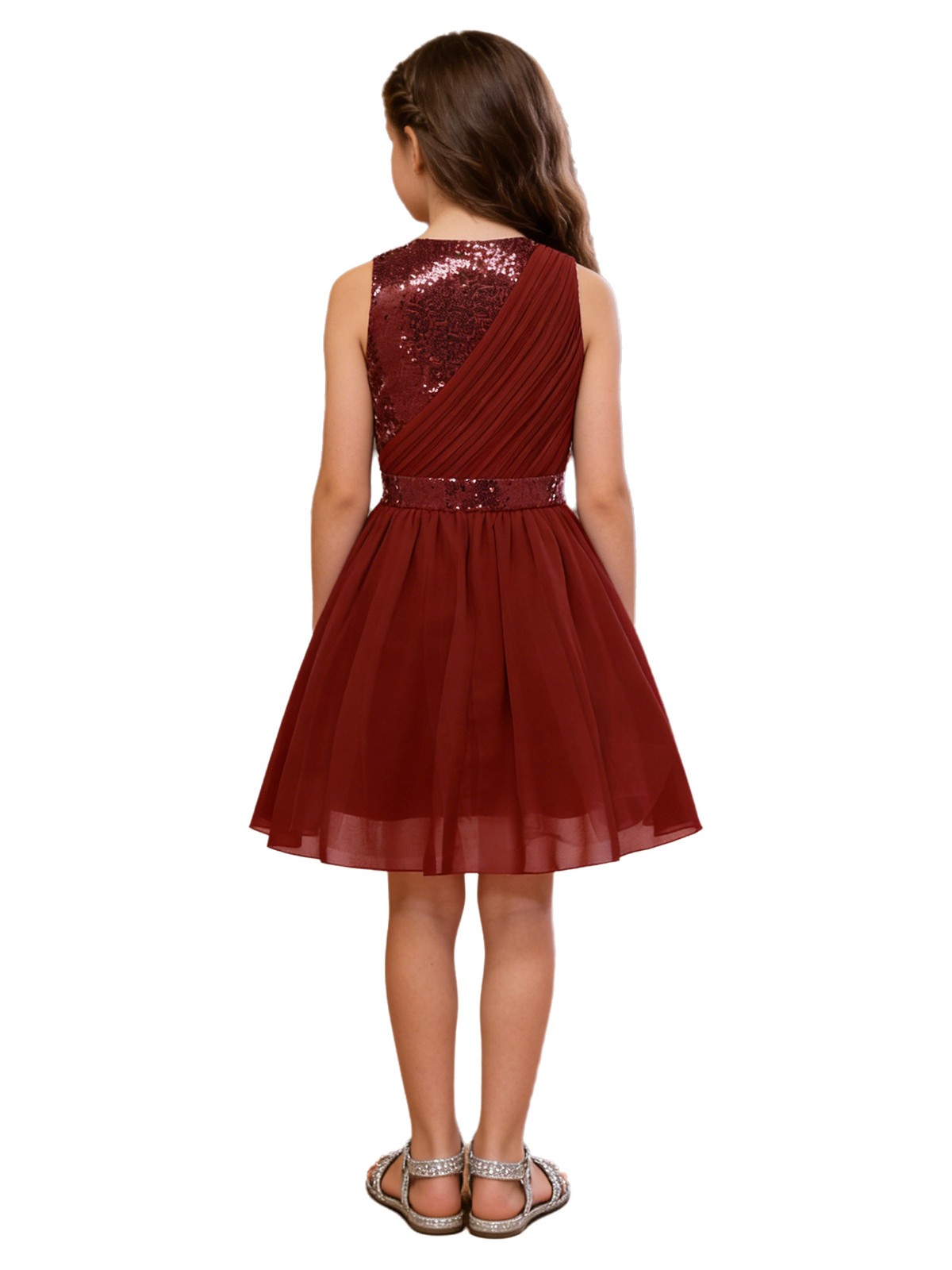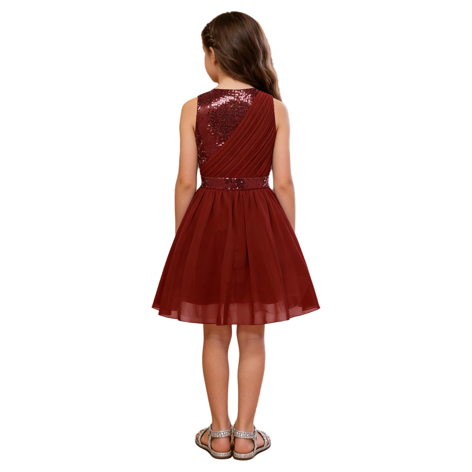 Kids Girls Dress Party Dresses Sparkly Gown Hem Sequin Sleeveless Glittery Puff