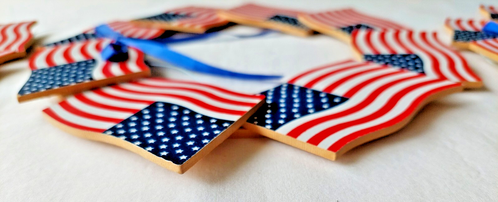 Wooden American Flag Wreaths Door/Wall Patriotic Decor Set of 3