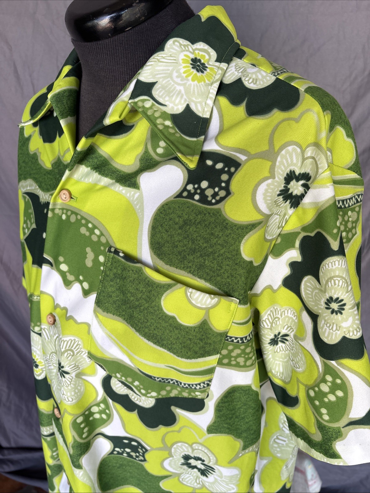 как выглядит Vintage 1970s Polyester Green Hawaiian Shirt Tiki Hula Honolulu Floral XL фото