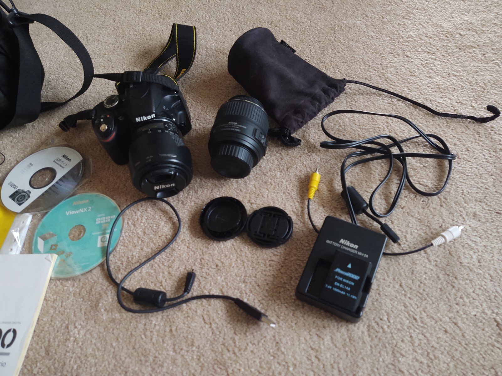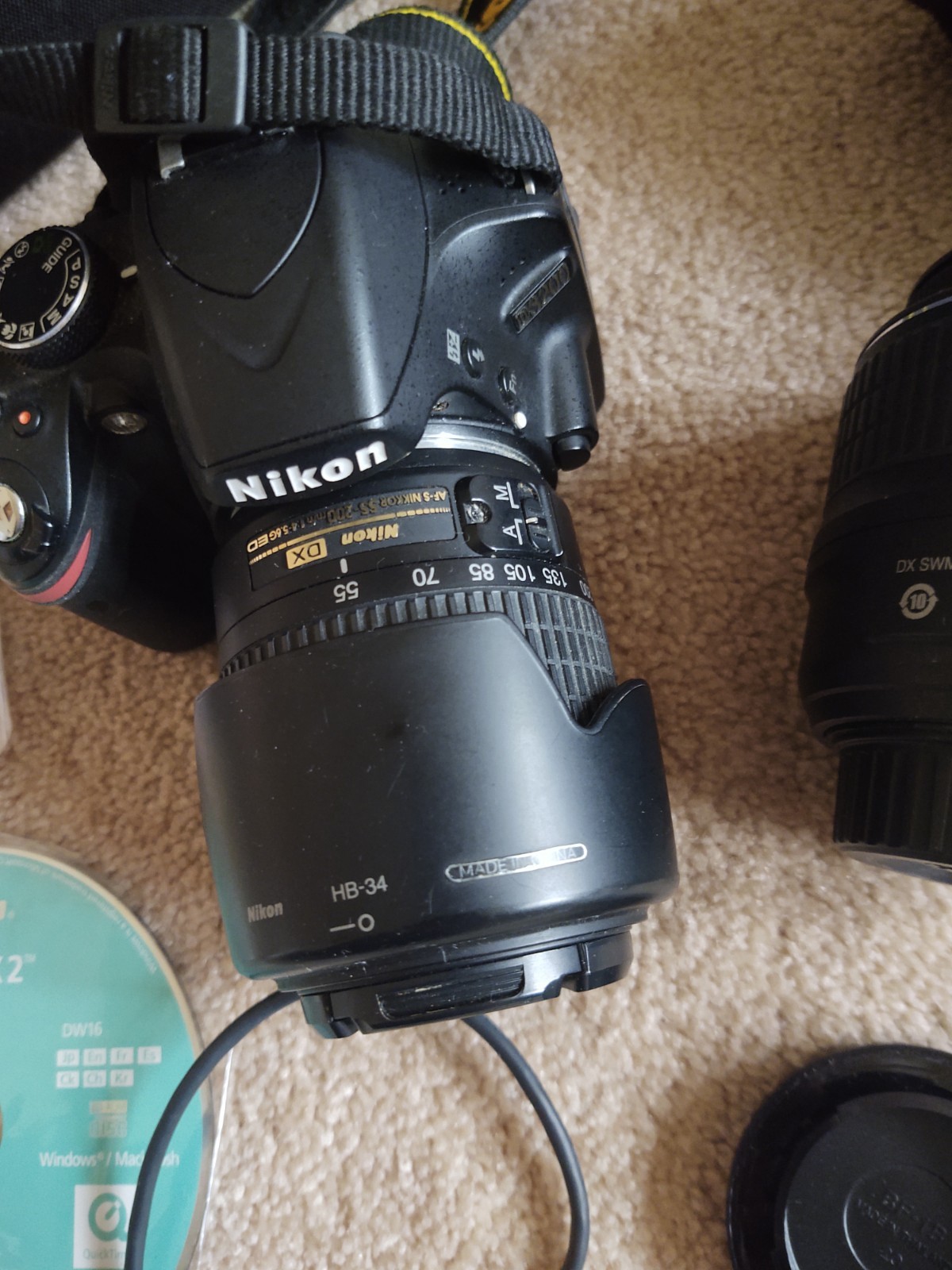 Nikon D3200 24.2MP Digital SLR DSLR Camera Double Zoom Lens Kit and Case