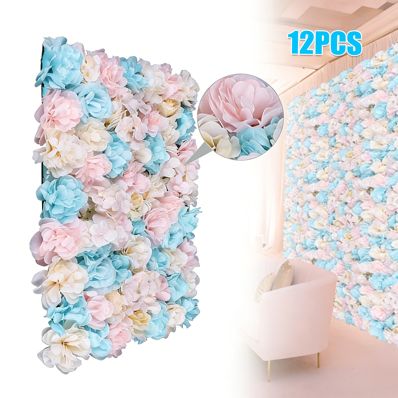 12PCS Artificial Flower Wall Panel White Hydrangea Rose Wedding Backdrop Decor
