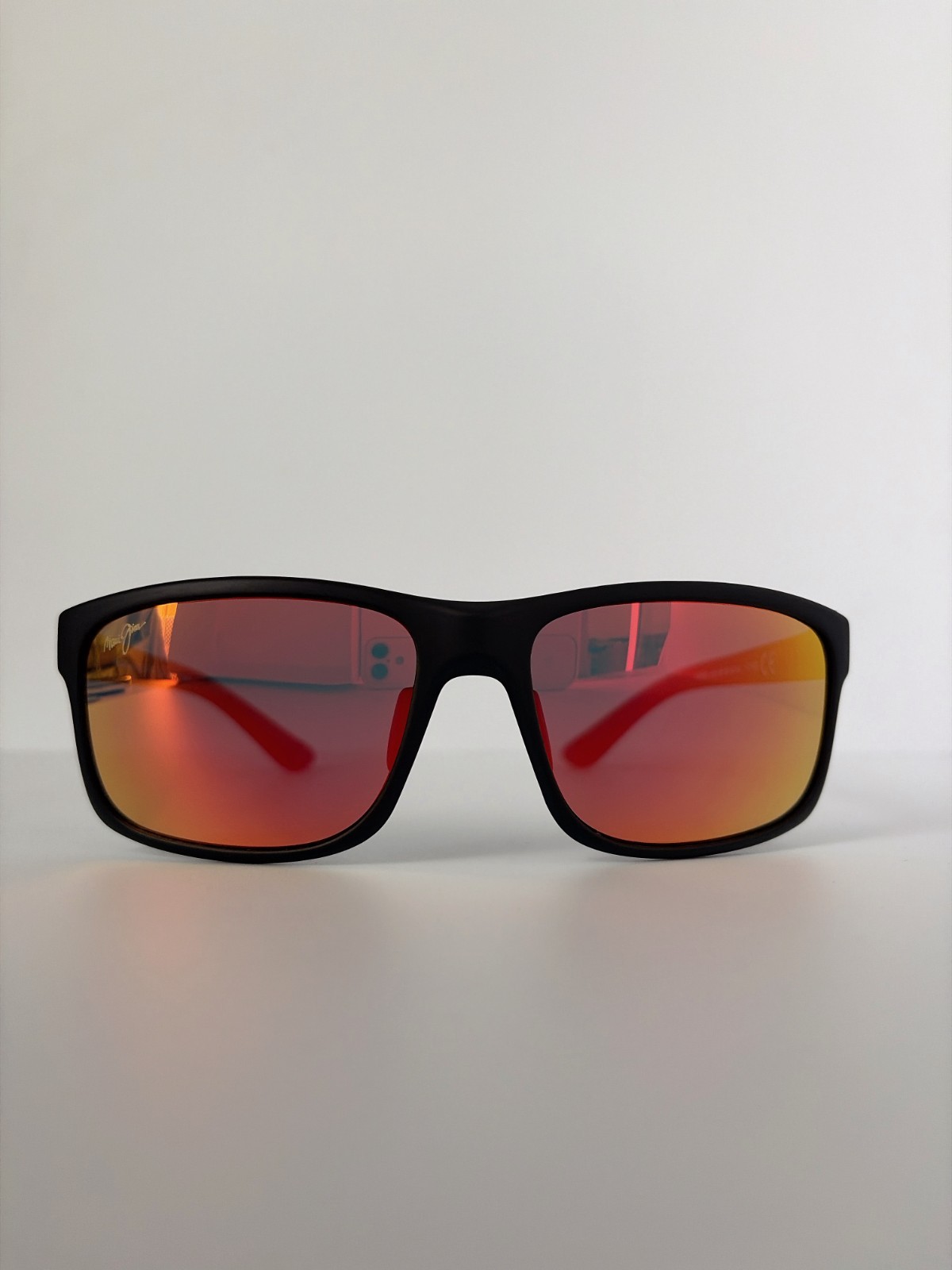 как выглядит Maui Jim Polarized Sunglasses RM439-35UTD Matte Black frames Red lens 58/17-139 фото