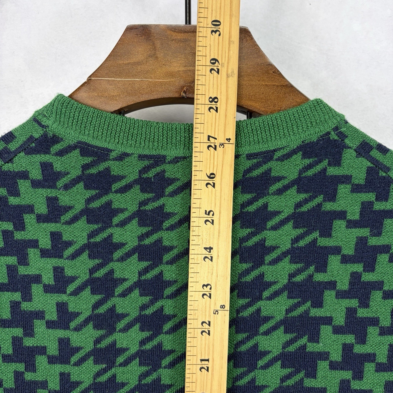 как выглядит Club Room Sweater Mens Medium Green Blue Houndstooth Merino Wool Blend Pullover фото