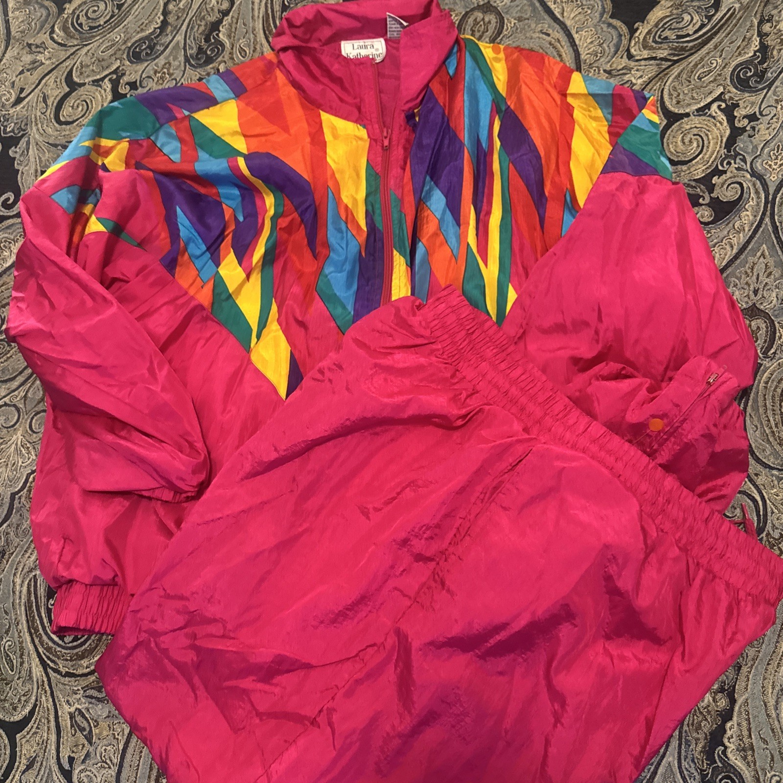 Laura Katherine Vintage Windbreaker Tracksuit 80s Jogger Color Block Multi Sz 20