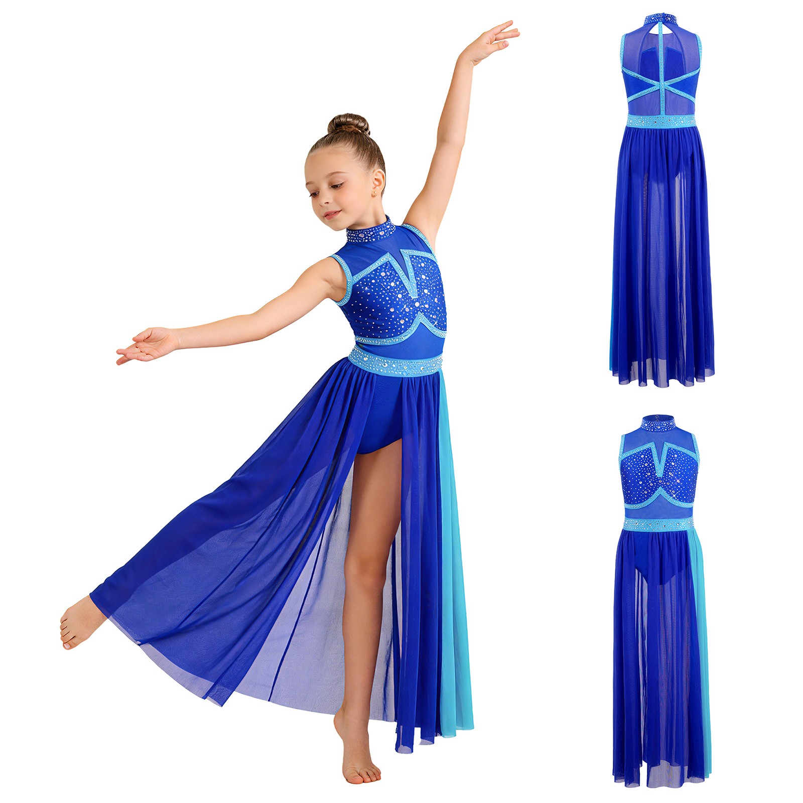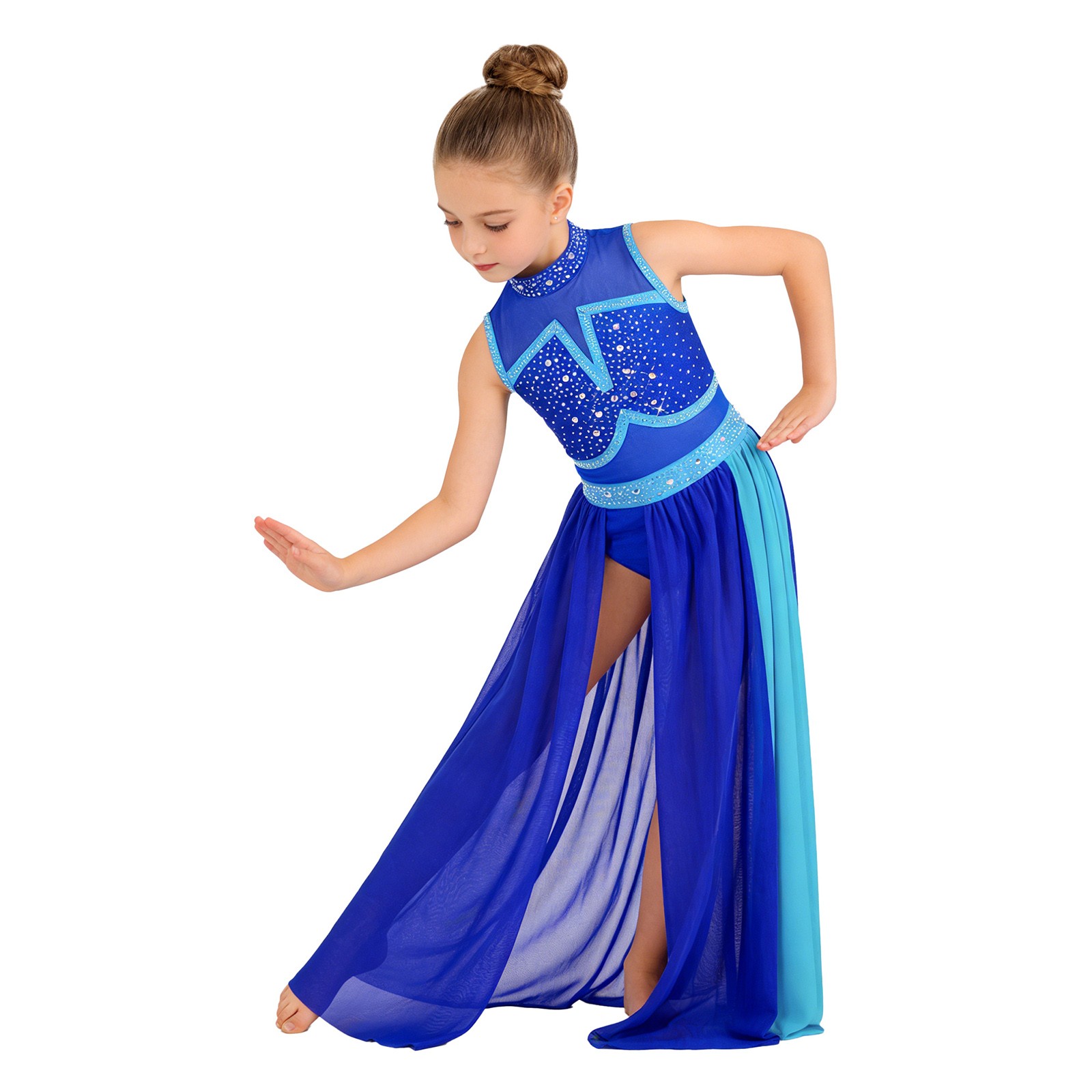 Kids Girls Dancewear Overlay Dress Lyrical Costume Dress Up Leotard Modern