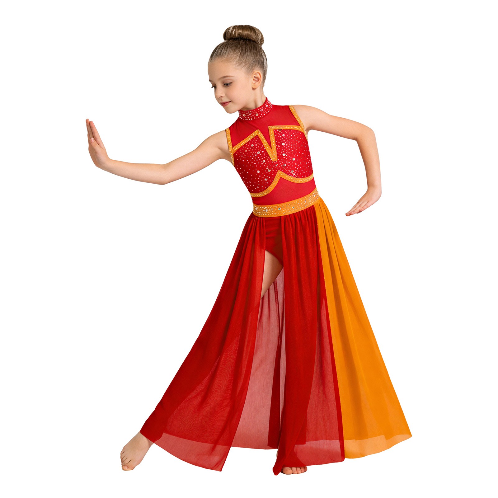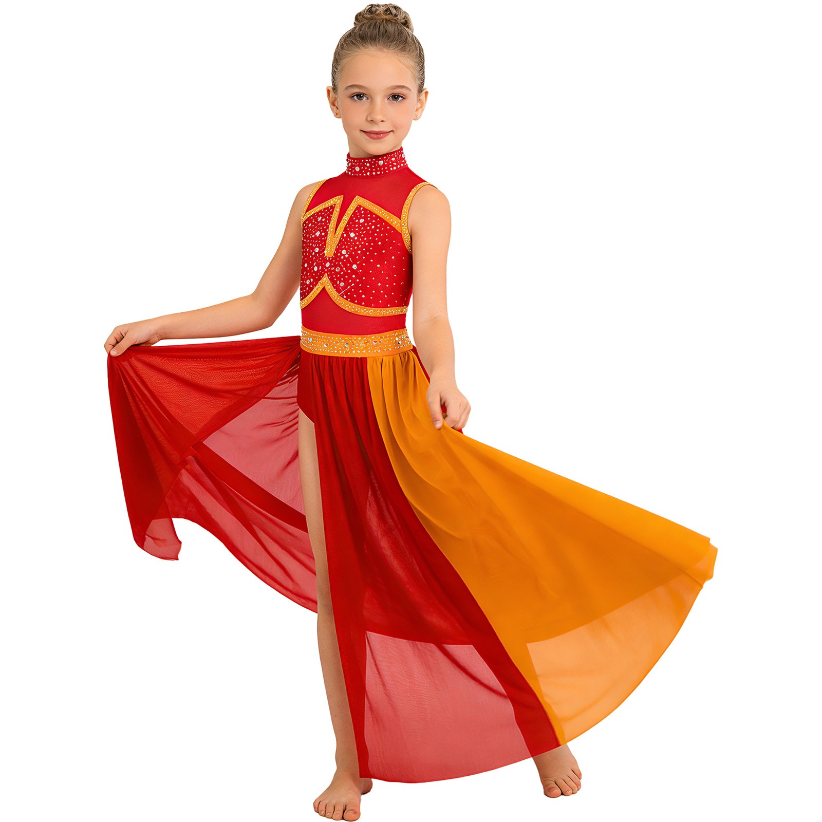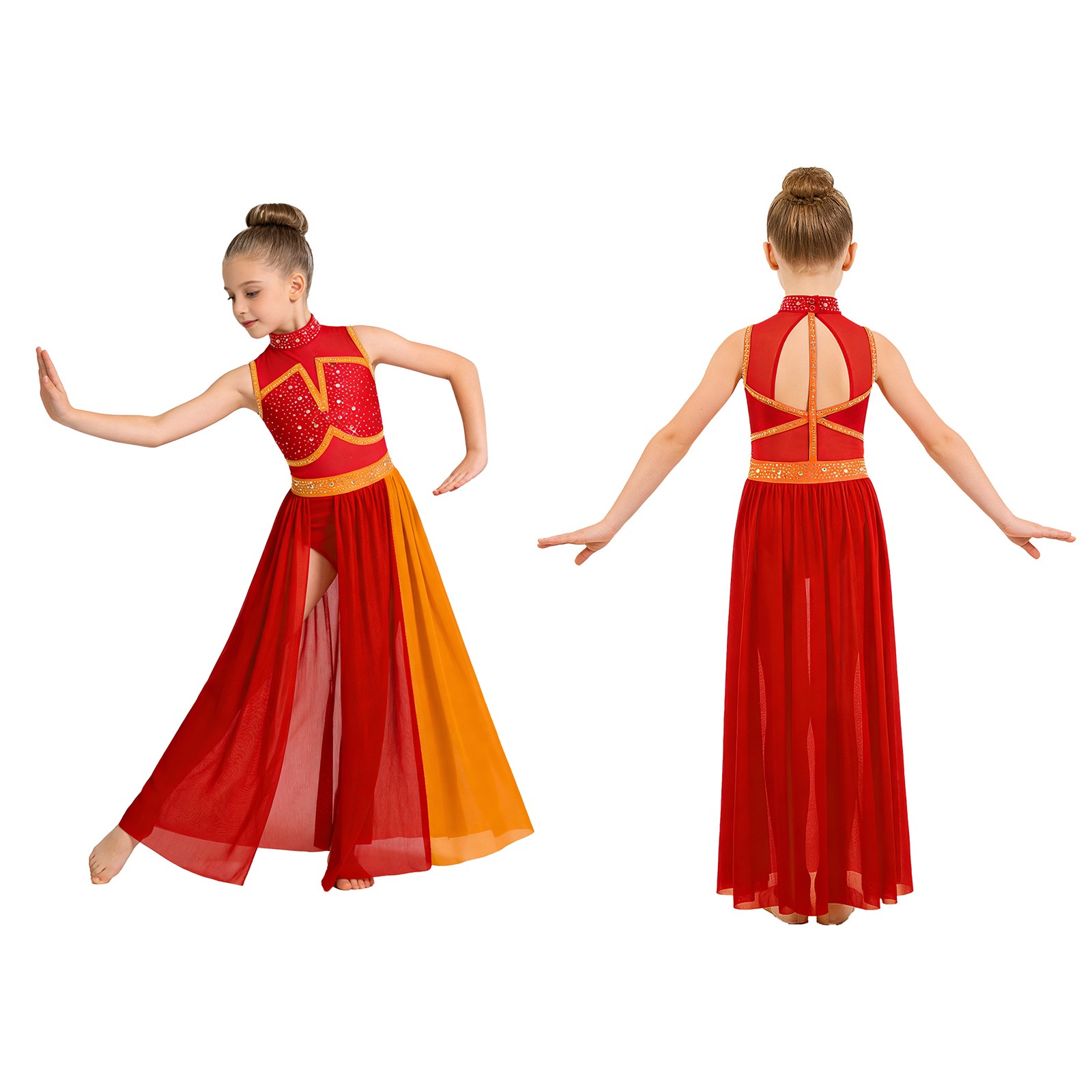 Kids Girls Dress Lyrical Dancewear Rave Costume Salsa Dance Dress Contemporary
