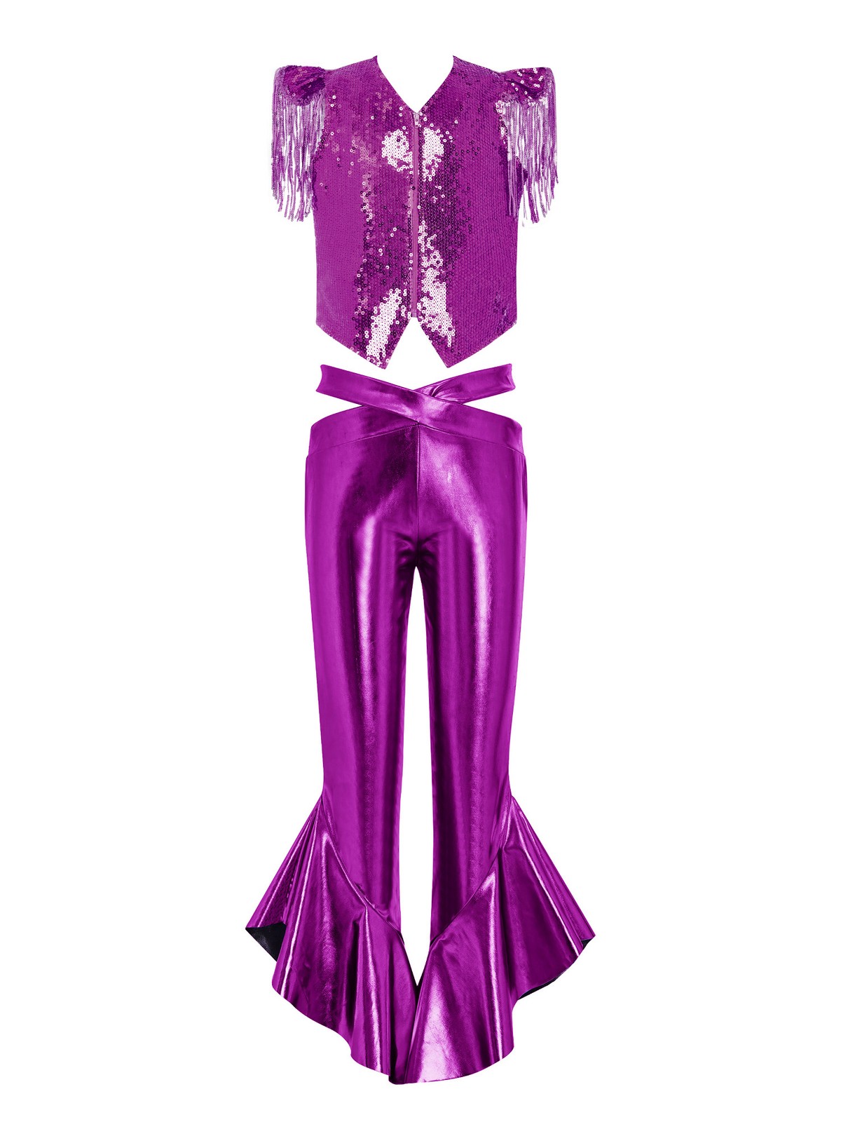 Girls Costume Halloween Dancewear Carnival Outfits Tassel Ballroom Competition