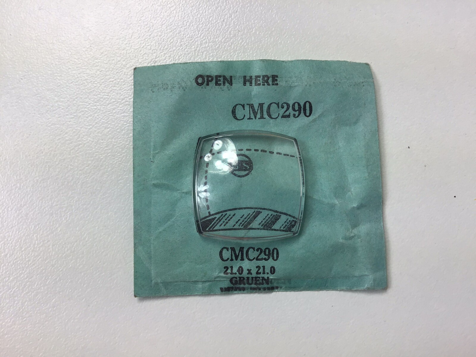 как выглядит NOS G-S Acrylic Watch Crystal Gruen 21.0 x 21.0 CMC290 Vintage фото